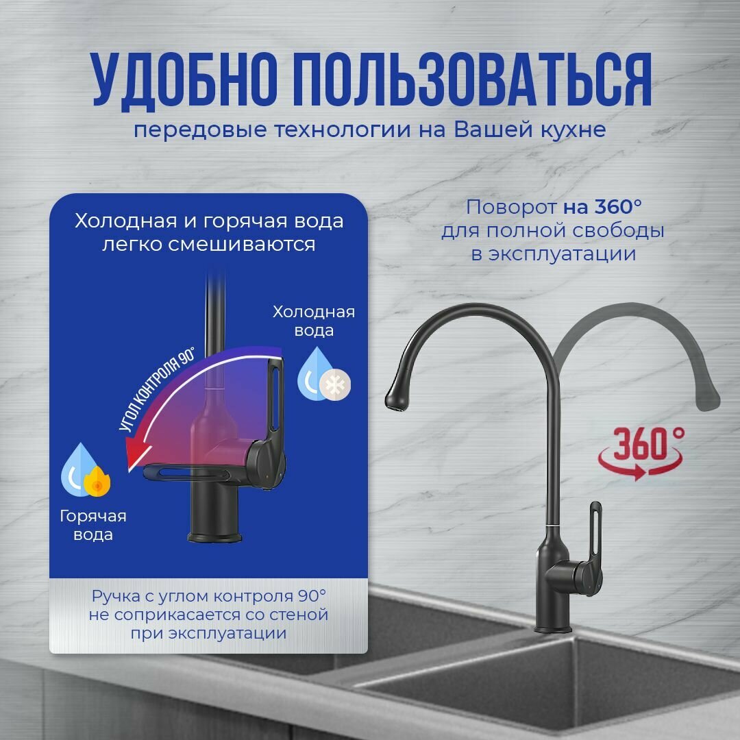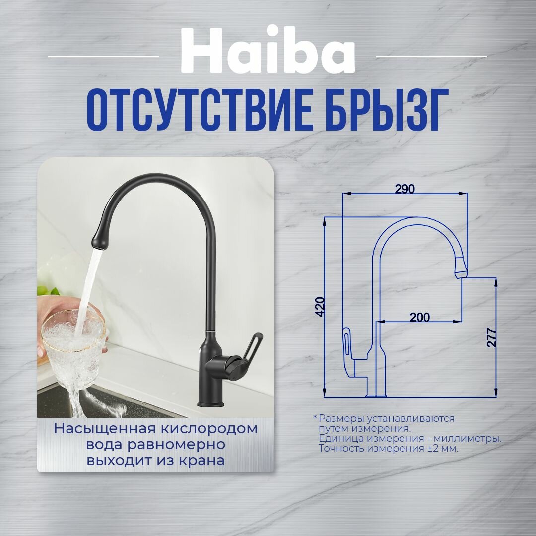 Смеситель для кухни HAIBA HB10590, латунь, черный матовый, поворотный, гибкий излив