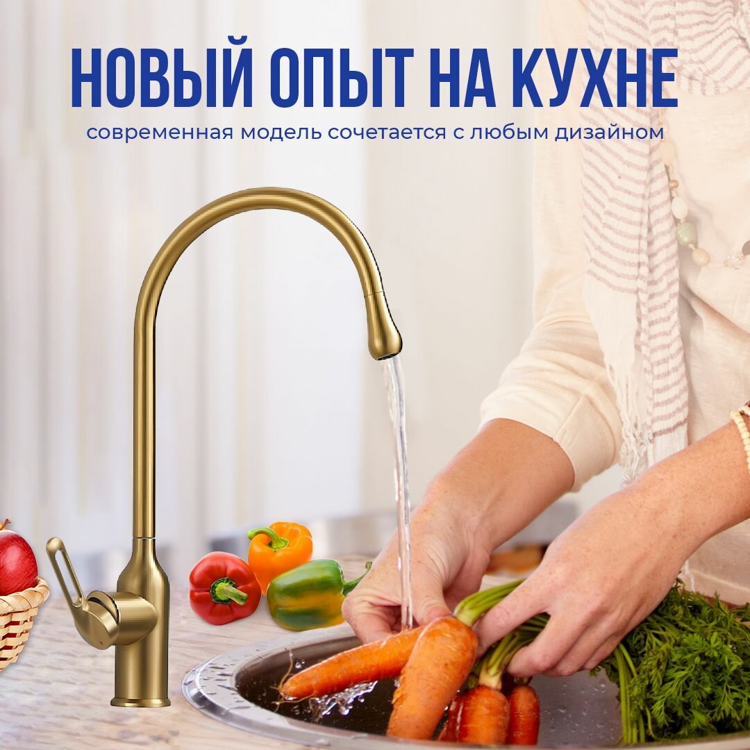 СохранитьСмеситель для кухни с высоким, поворотным изливом Haiba HB71825-5, золотой. интересное: