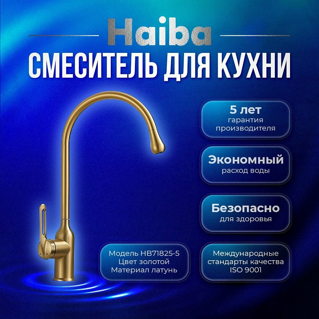 Смеситель для кухни Haiba HB70181-5, цвет золотой