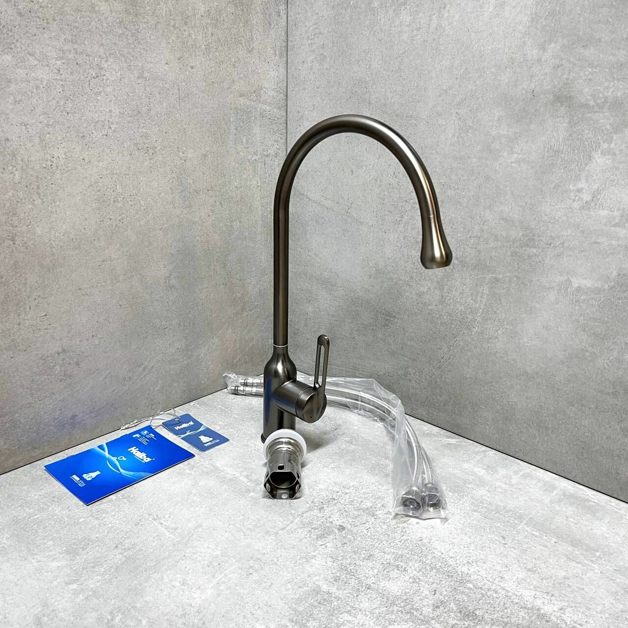 Купить Смеситель для кухни с высоким, поворотным изливом Haiba HB71825-3, графит.