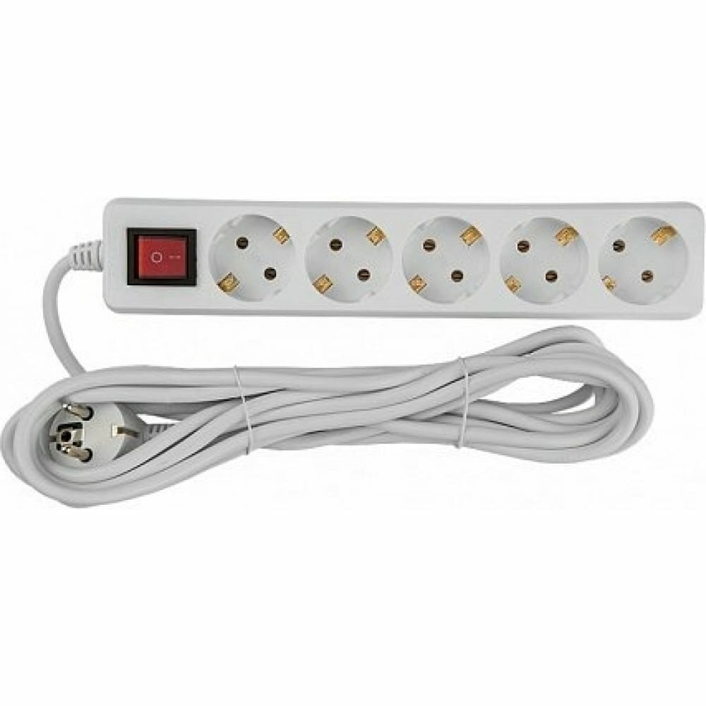 Купить General Lighting Systems Удлинитель бытовой 5 розеток, с заземлением и выключателем, 10 метров, 16А, 3500Вт, Белый GES-16-3x100-5-10m-S 470046