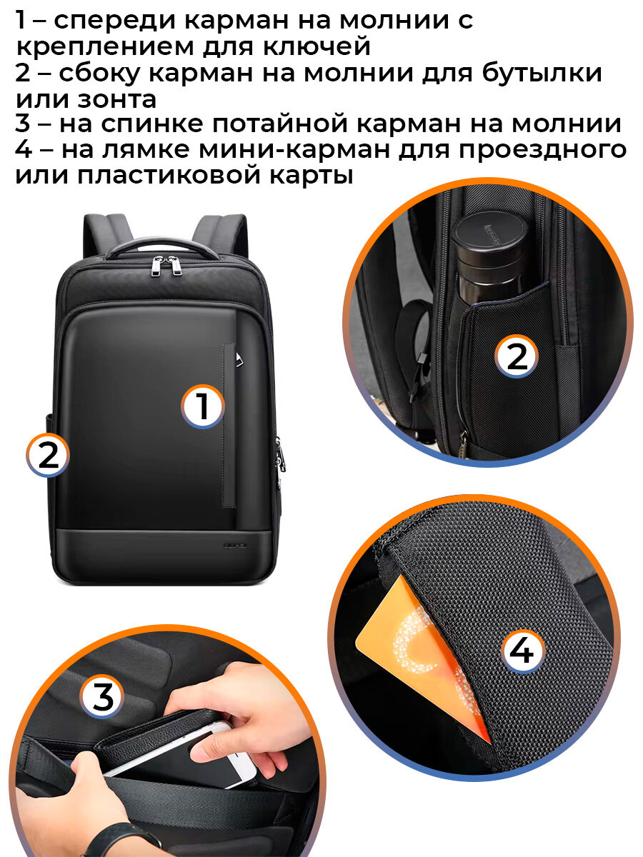 Рюкзак мужской/женский городской дорожный Bopai 20л, для ноутбука 15.6", водонепроницаемый, с потайным карманом, черный интересное:
