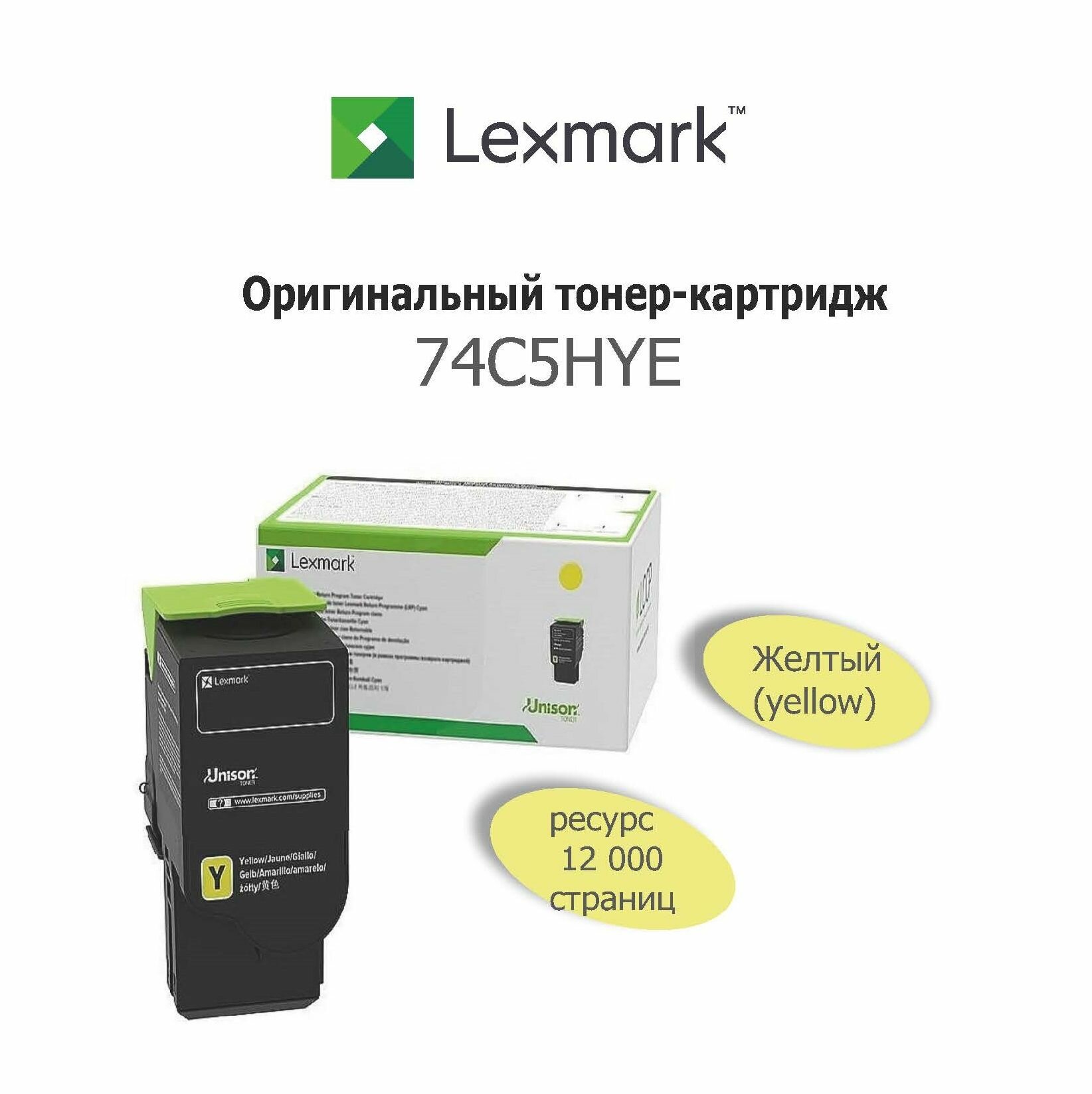 Картридж Lexmark 74C5HYE, 12000 стр, желтый