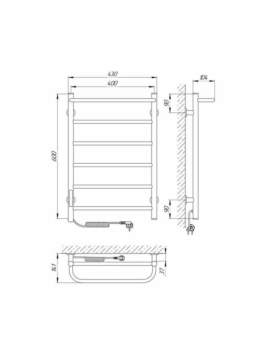Полотенцесушитель электрический 600x430 диммер слева Laris Прайм ЧКЧ6 73207592