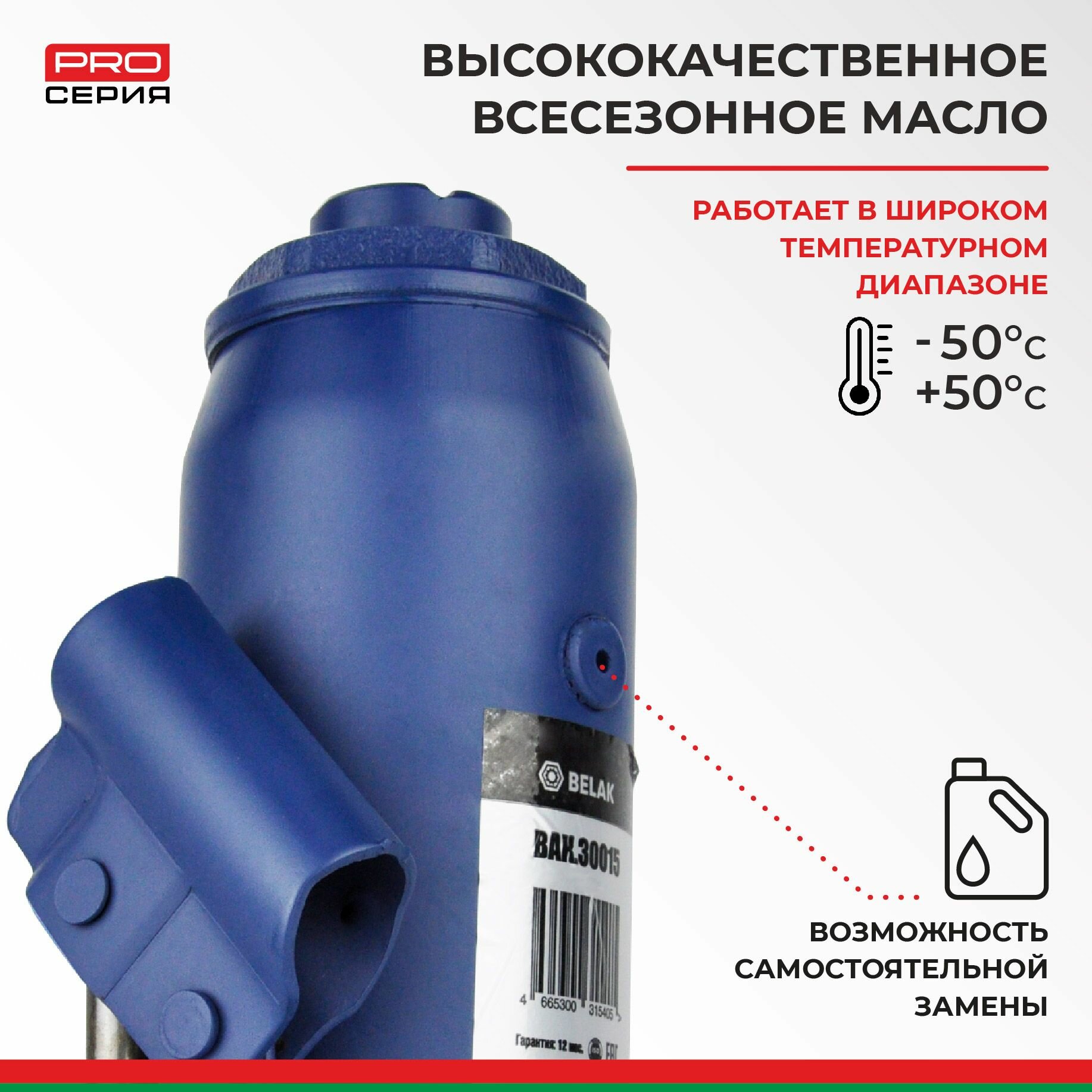 BELGOROD BAK30015 Домкрат 8 тонн PREMIUM "BELAK" (TUV, 2 клапана, 230мм-435мм)