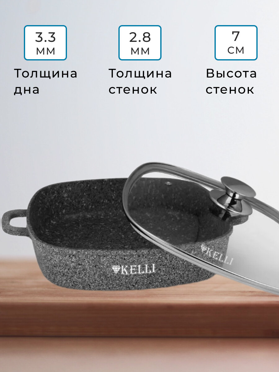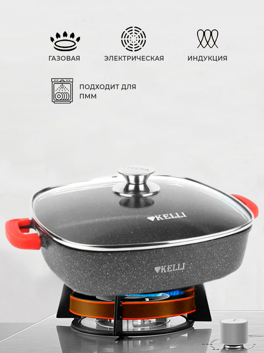 Сотейник с крышкой KELLI KL-4020-28 жаровня с мраморным покрытием 4,5л