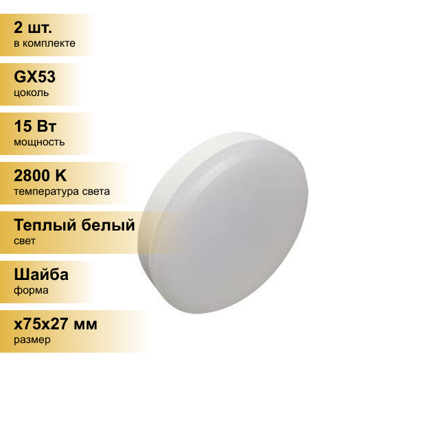 Купить (2 шт.) Светодиодная лампочка Ecola GX53 св/д 15W 2800K 2K 27x75 матов. Premium T5UW15ELC Теплый белый. Цоколь GX53