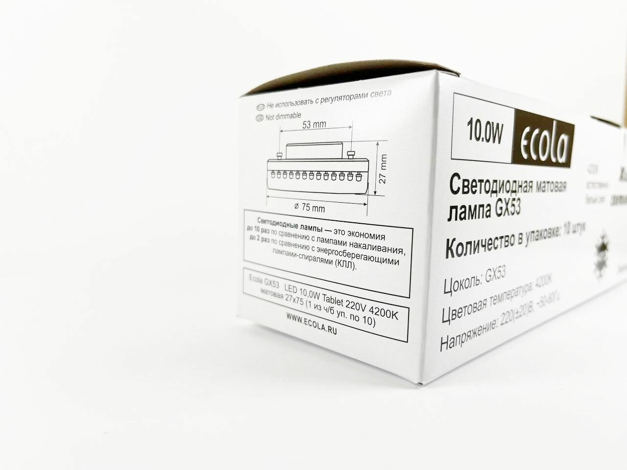 Светодиодная LED лампа Ecola GX53 10W 4200K 4K 27x75 матовая T5DV10ELC (упаковка 10 штук)