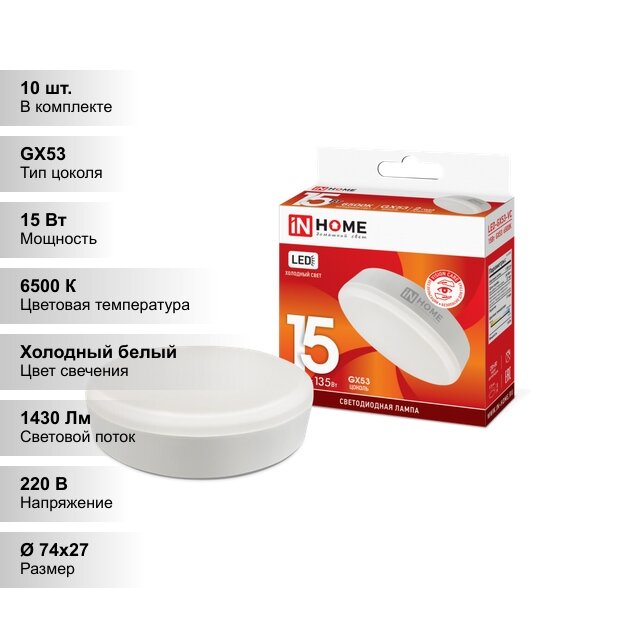 Купить (10 шт.) Светодиодная лампочка IN HOME GX53-VC15Вт 230В 6500К 1200Лм