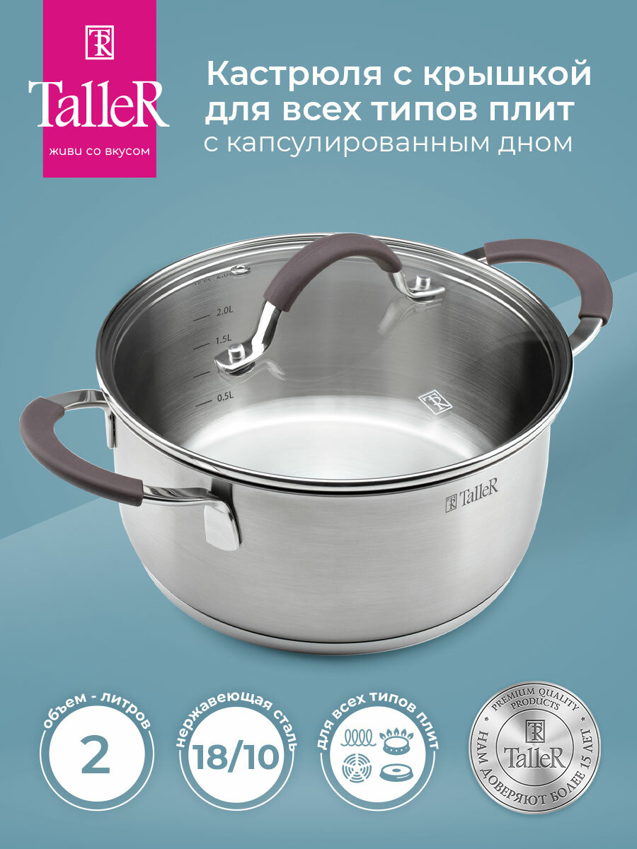 Купить Кастрюля с крышкой TalleR TR-11022 Лира 2.0 л, для всех типов плит