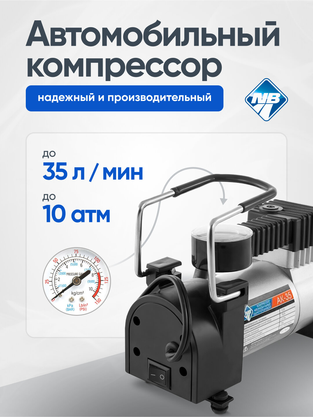 Купить Компрессор "Nova Bright" АК-35, 35 л/мин., 140 PSI, 12В, металлический корпус, в сумке