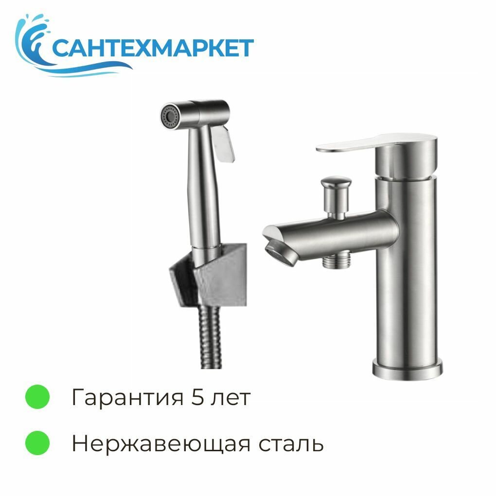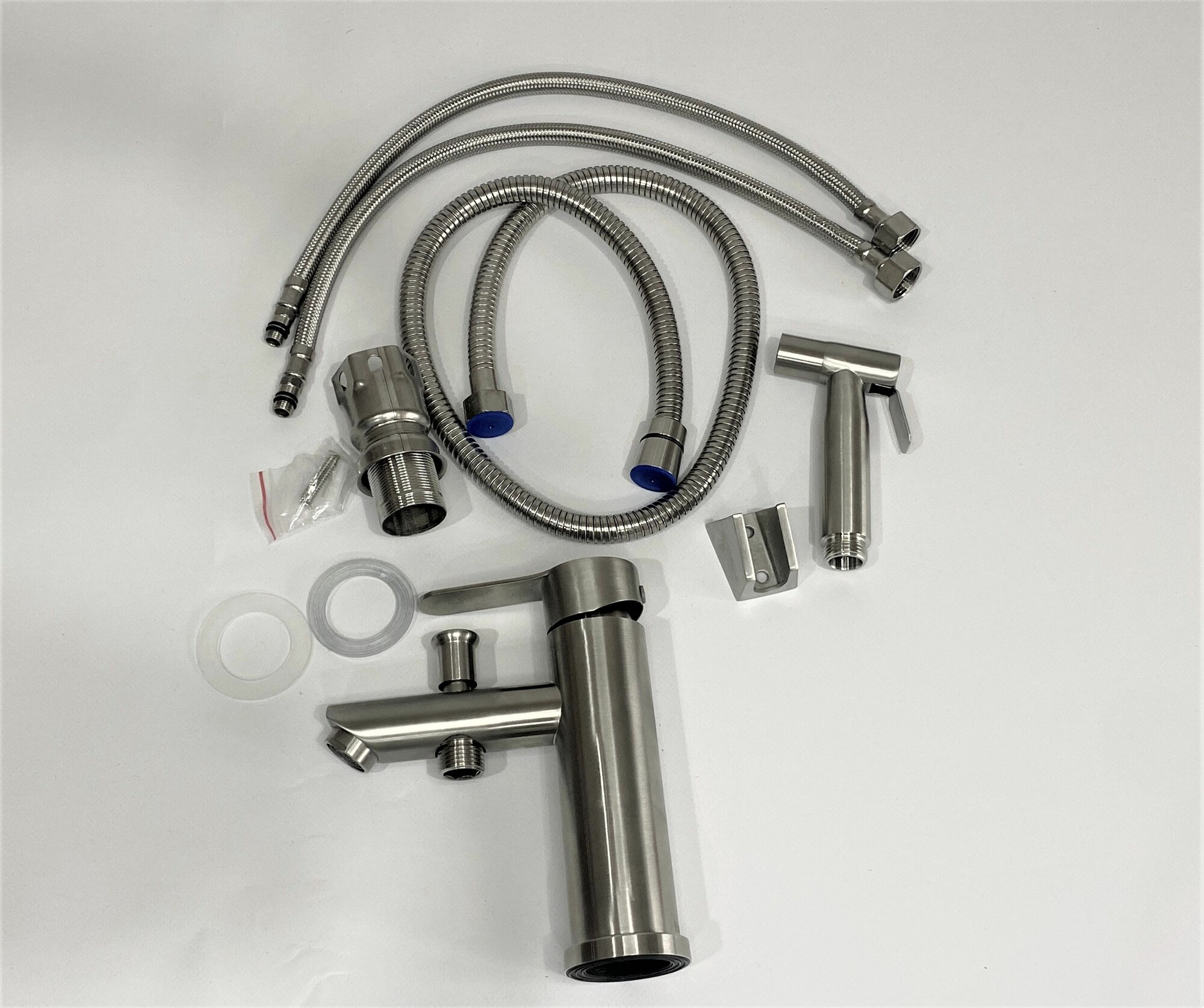 Смеситель для раковины с гигиеническим душем Haiba HB12801, нержавеющая сталь