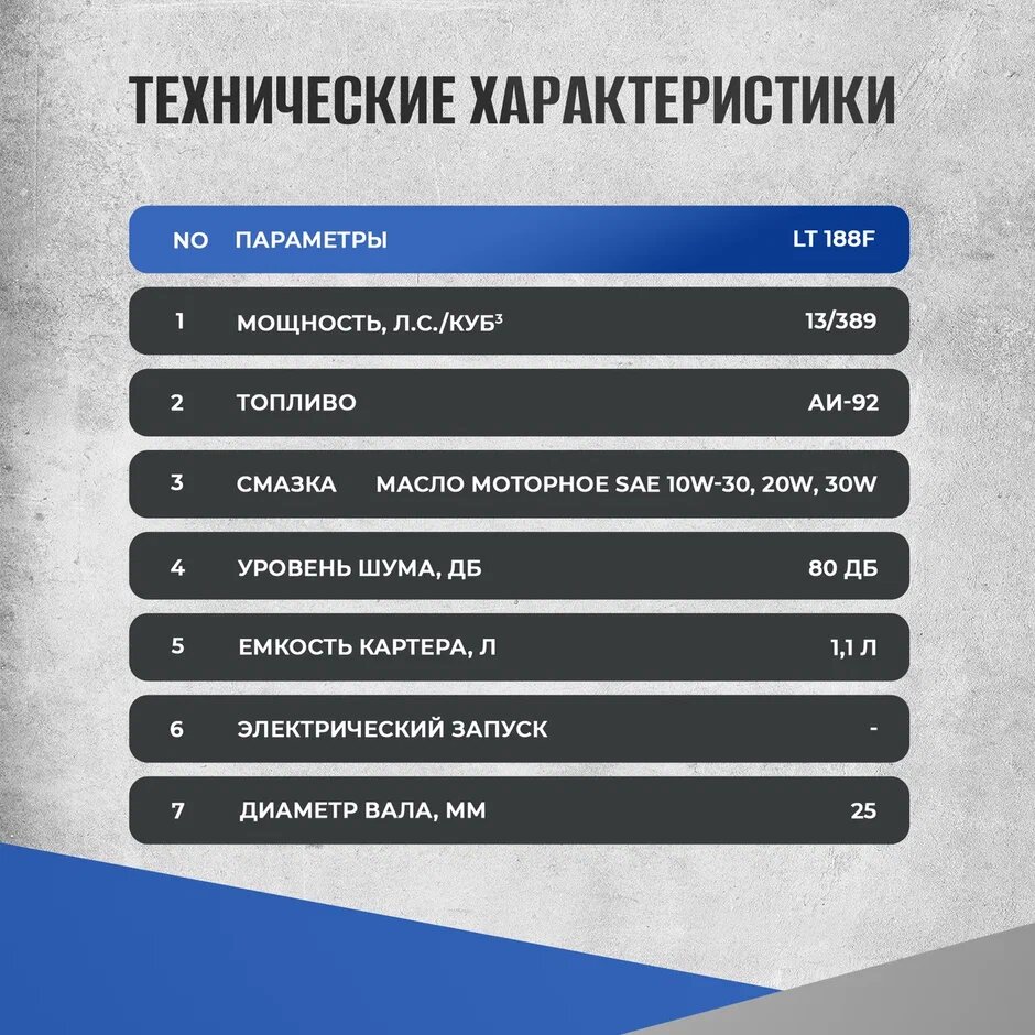 Двигатель для мотоблока / Двигатель / Двигатель на мотоблок / Мотор для мотоблока ELECTROLITE LT 188F ( 13 л.с, ручной стартер, вал 24,5 мм, 4-х тактный, 9,6 кВт)