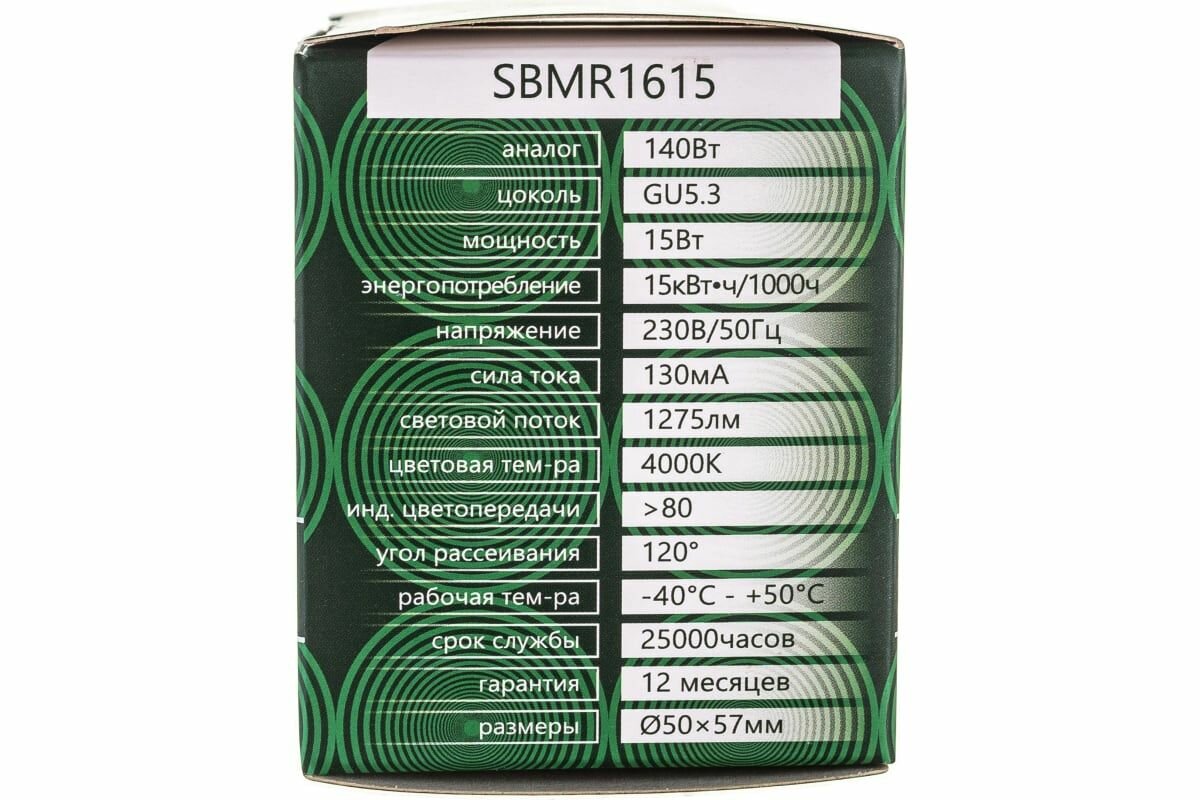 Лампа светодиодная SBMR1615 MR16 GU5.3 15W 4000K, SAFFIT 55225 (1 шт.)