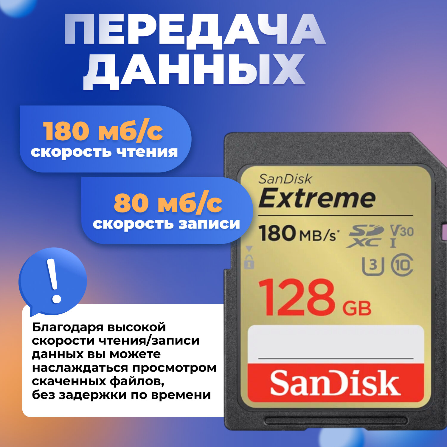 Карта памяти SD 128 ГБ SanDisk Class 10 Extreme