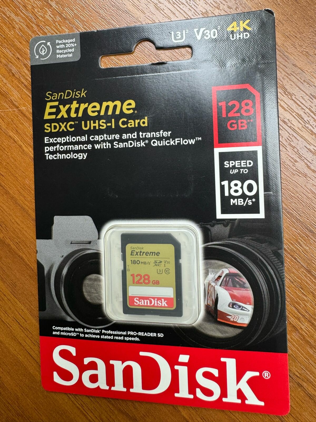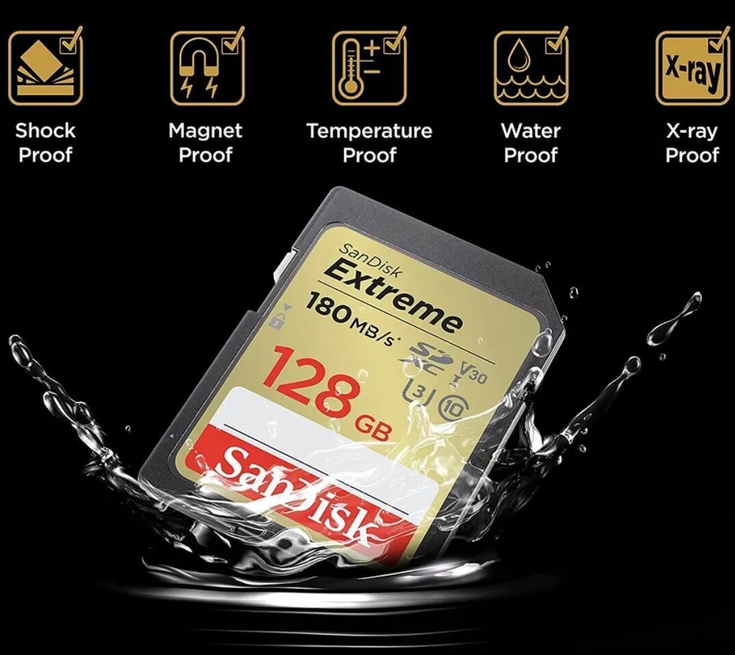 Карта памяти SanDisk Extreme SDXC 128 ГБ Class 10 UHS-I U3 V30 (R/W 180/90 Mb/s)