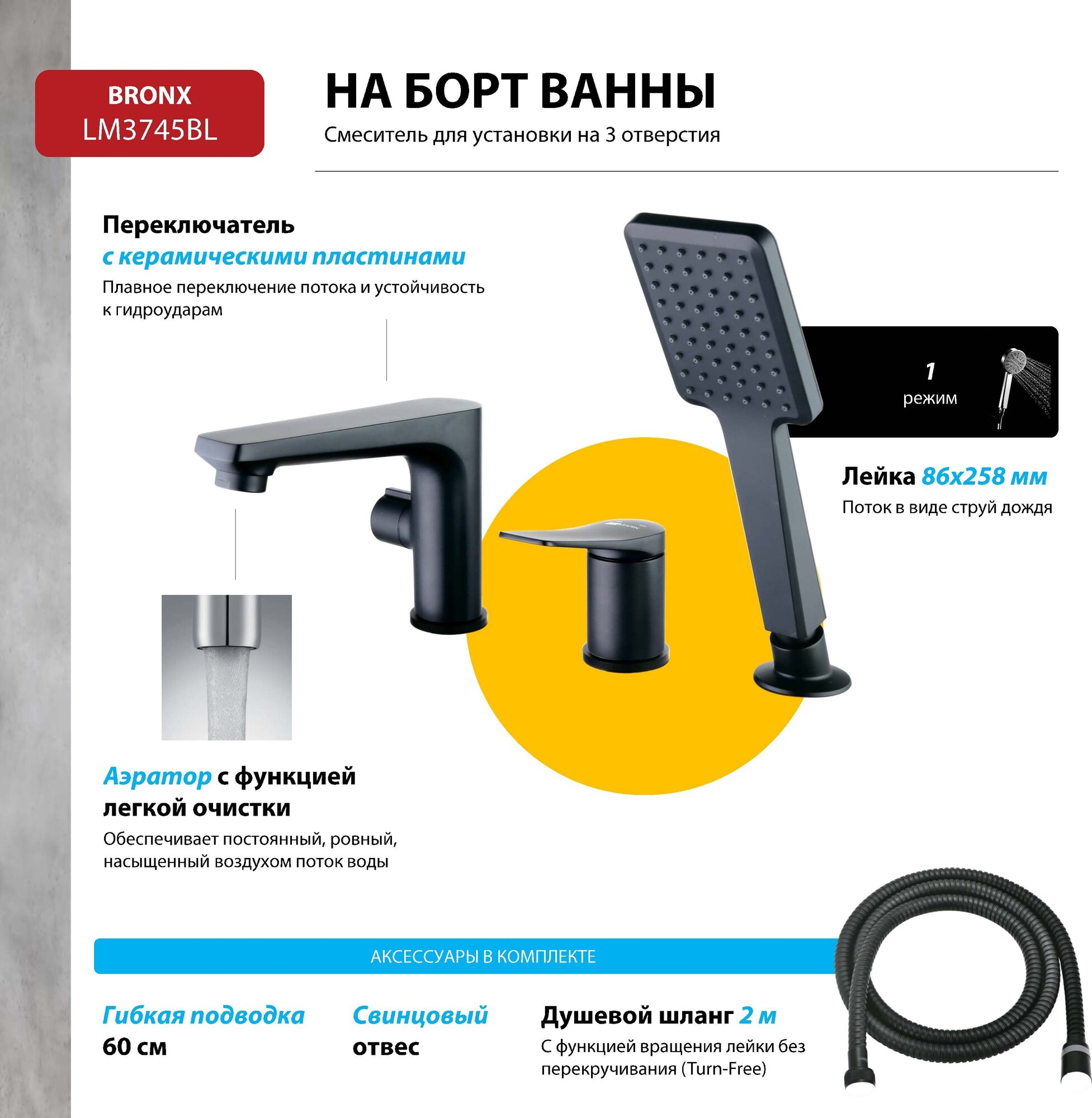 СохранитьСмеситель для ванны Lemark Bronx LM3745BL черный интересное: