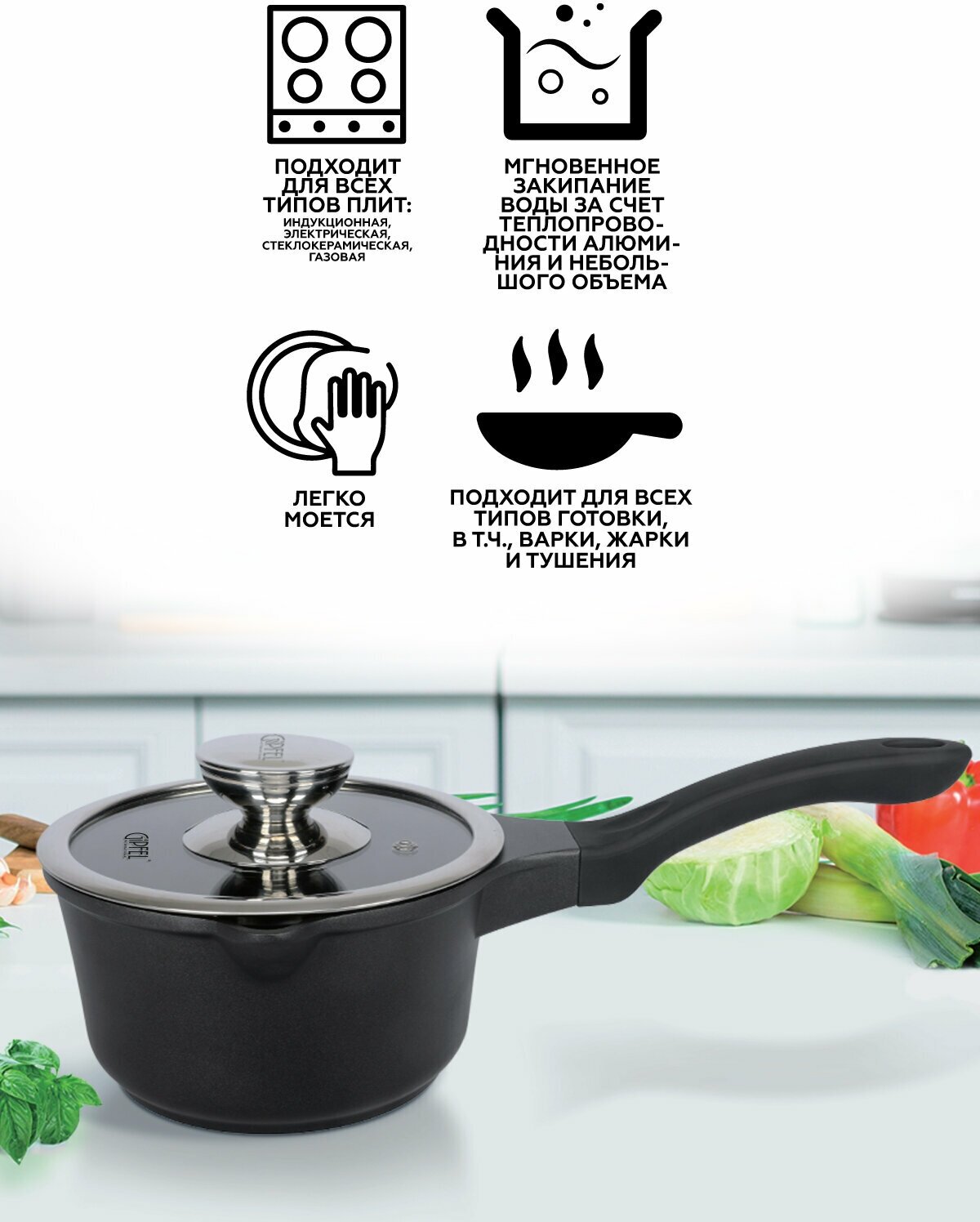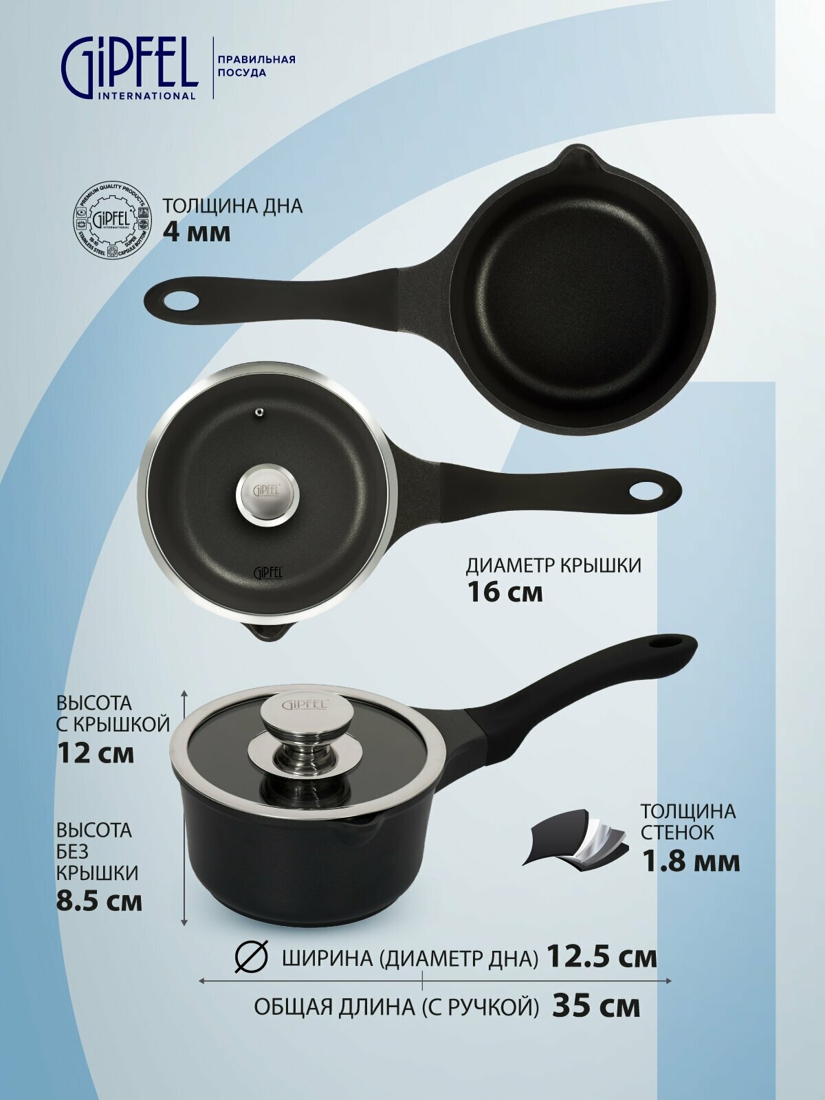 Ковш алюминиевый Gipfel Richmond 0143 1,5 л черный/серебристый интересное: