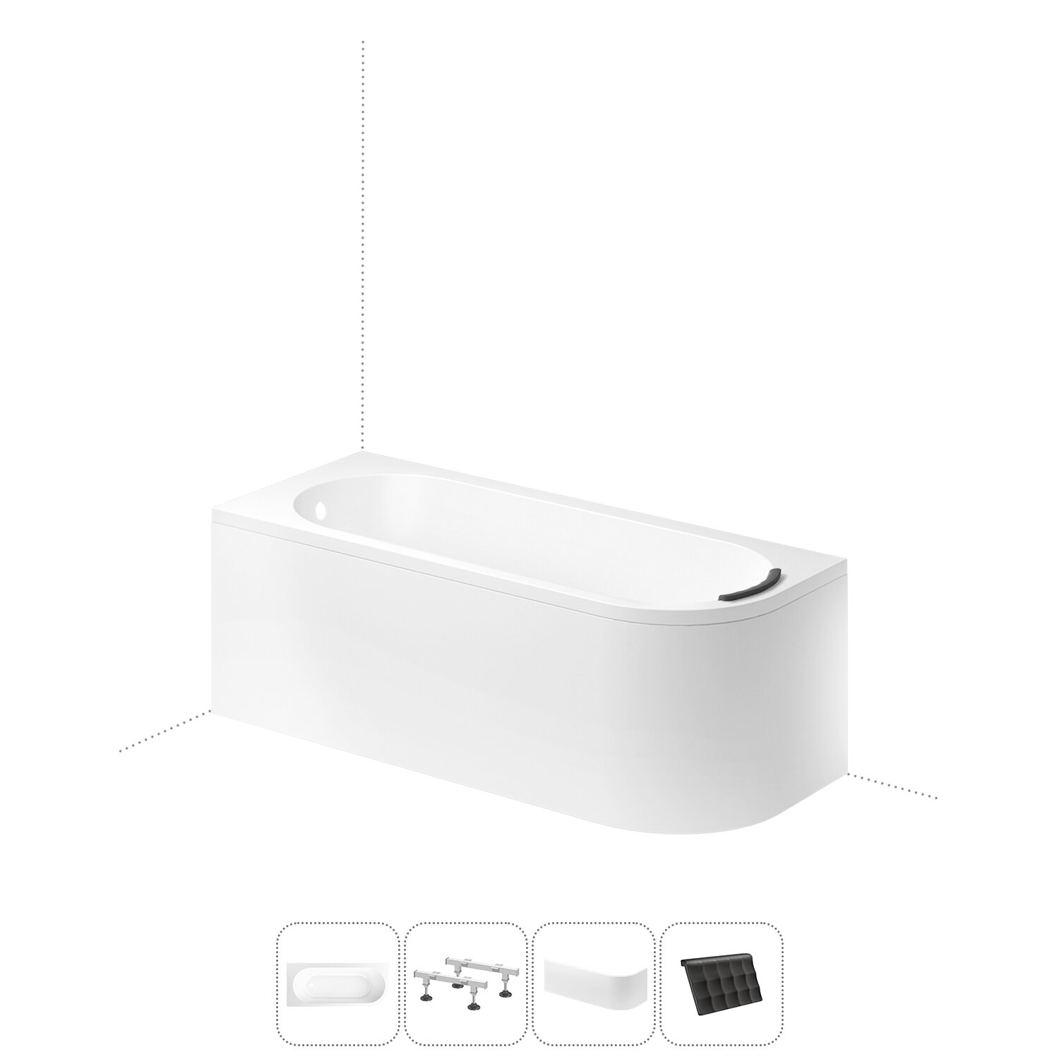 Ванна акриловая 170х72,5 Lavinia Boho Art II S2-371317PL в наборе 4 в 1: ассиметричная ванна 170 х 72,5 см (левый разворот), металлические ножки, мягкий подголовник, лицевой экран
