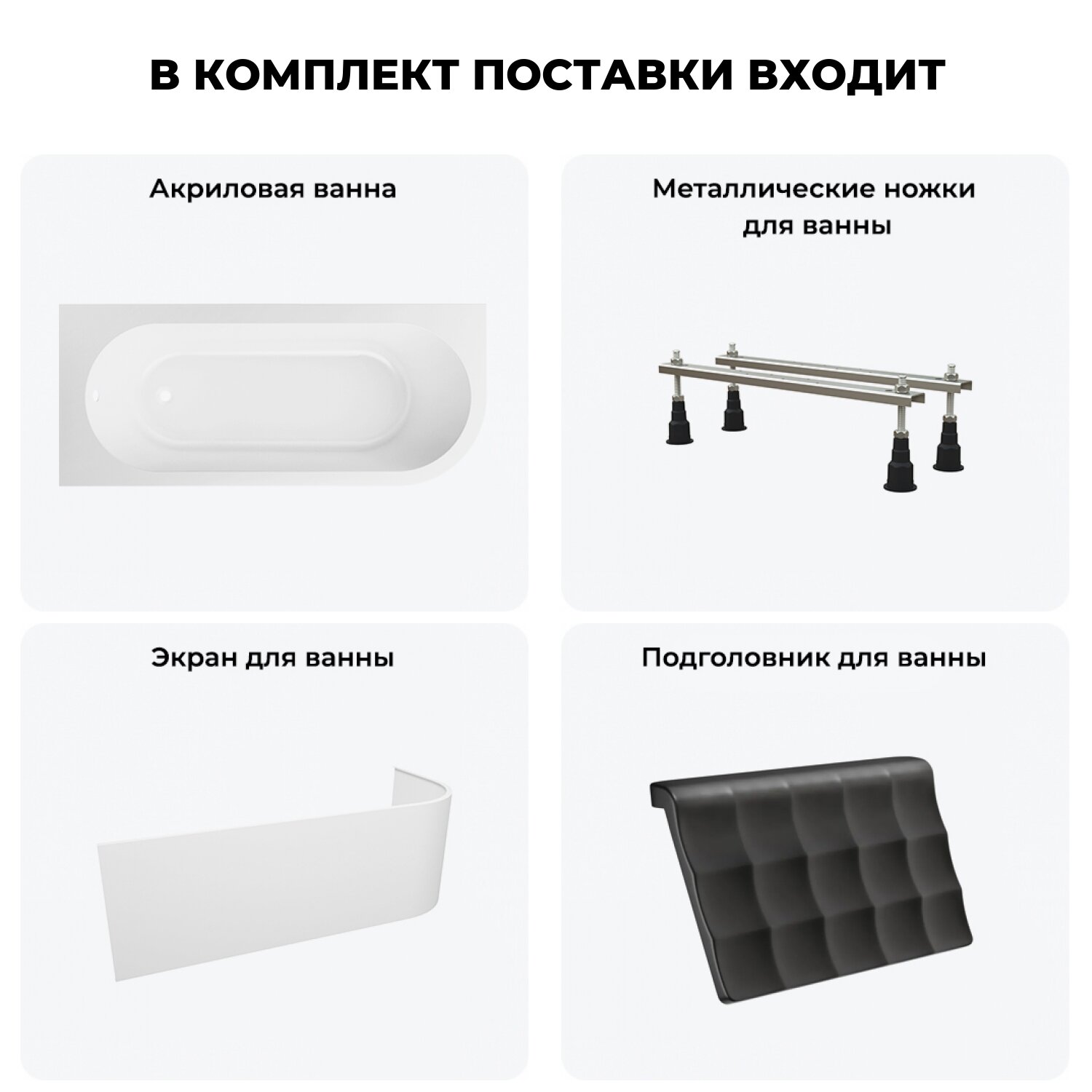 Комплект 4 в 1 Lavinia Boho Art II S2-371317PR, акриловая ванна 170x72,5 см (правый разворот), ножки, подголовник, лицевой экран