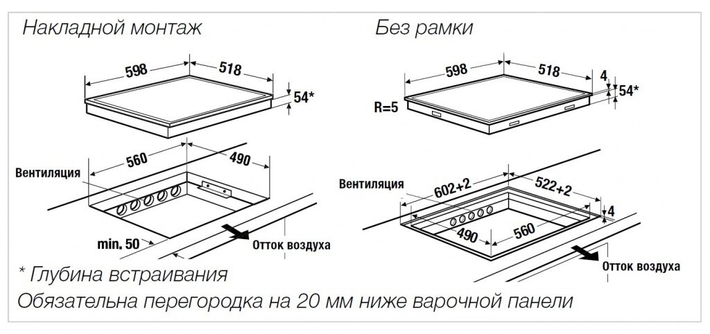 | Размеры конфорок | 160 мм, 180 мм, 200 мм, 220 мм |