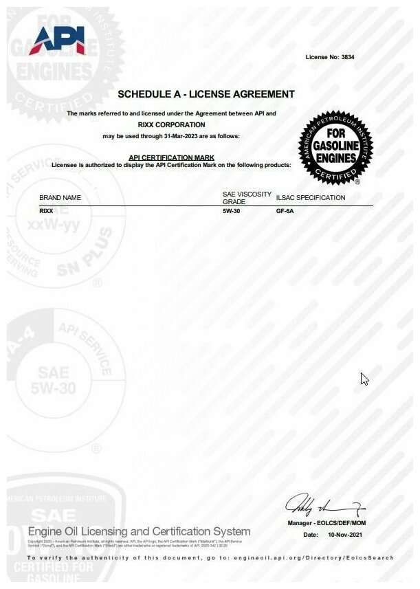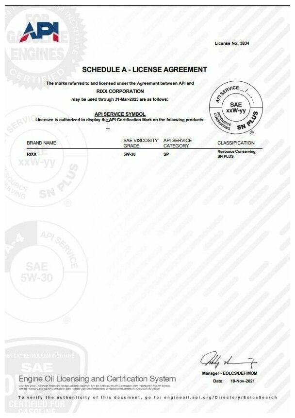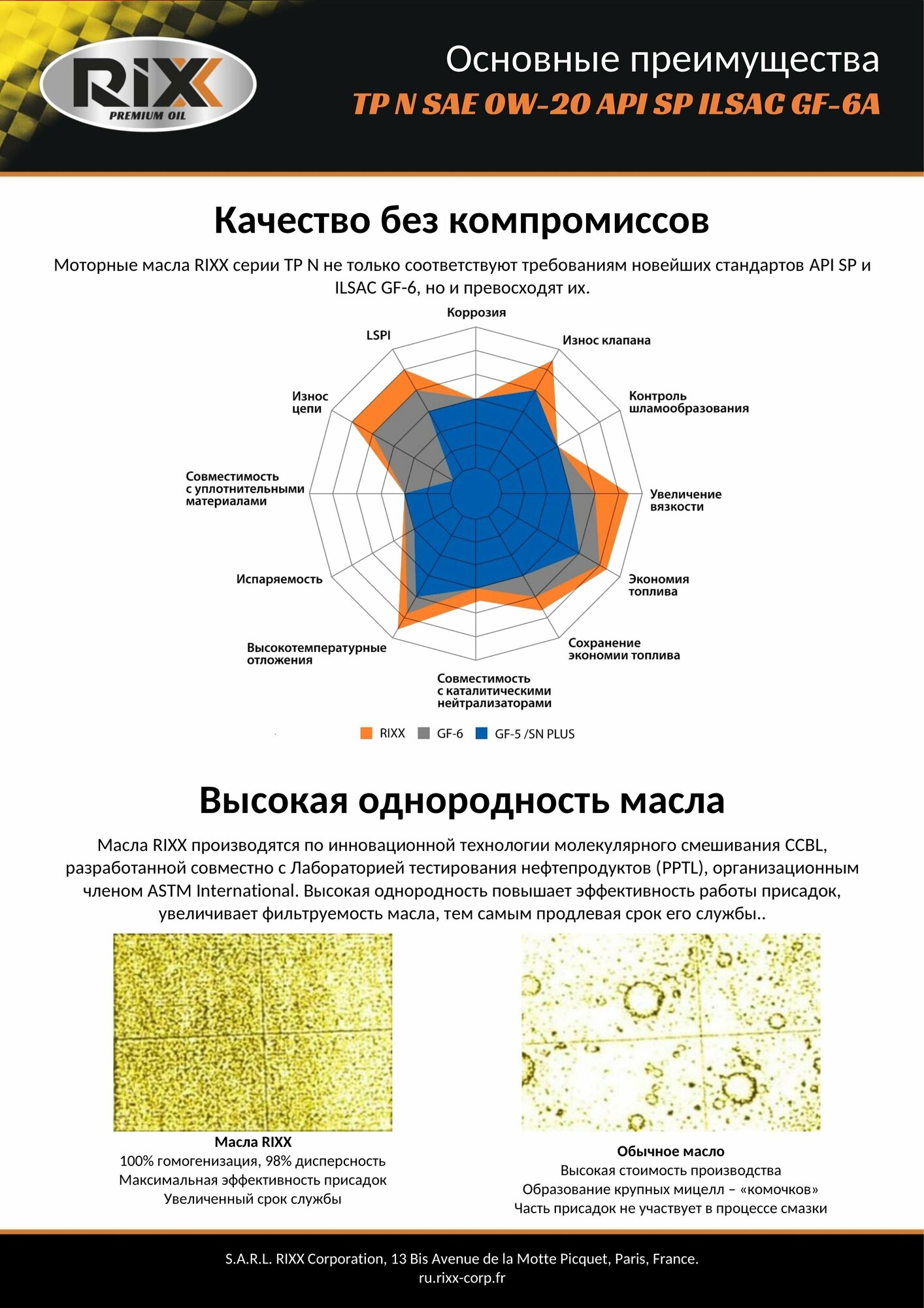 Масло моторное синтетическое RIXX TP N 5W-30 SP/ILSAC GF-6AF РАО 4л интересное:
