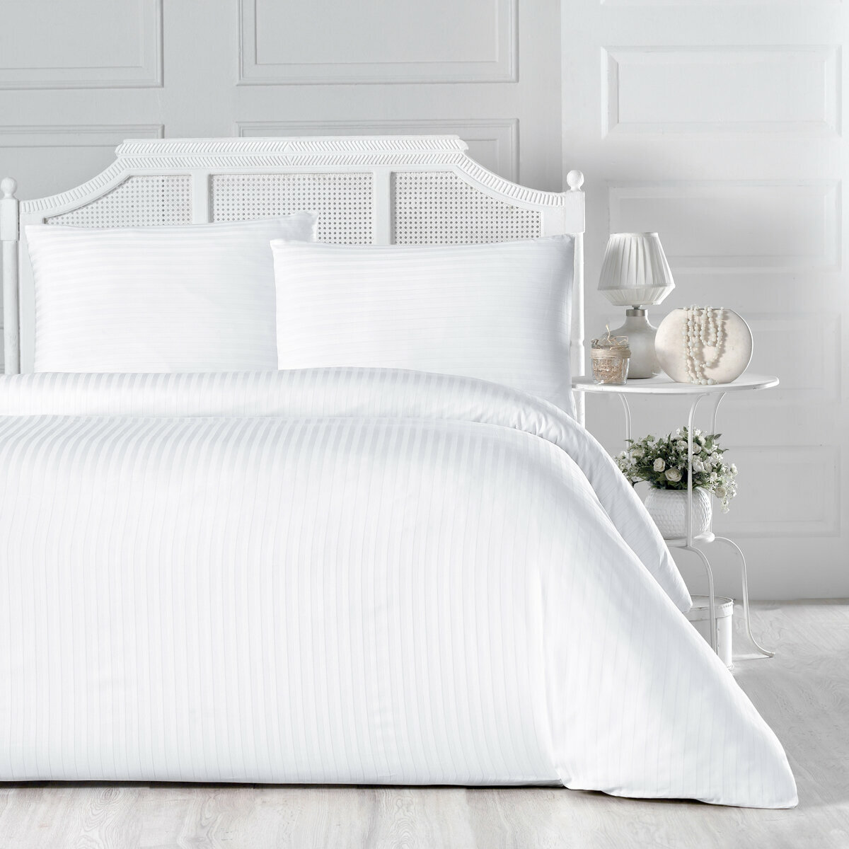 Простыни Arya Полосатый Сатин 240X260 Otel Белый