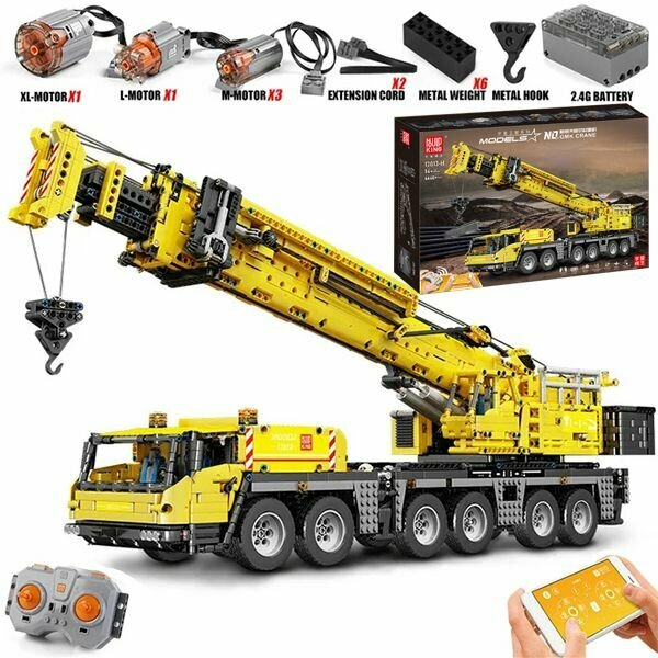 Конструктор Mould King 15069 Мобильный гусеничный кран, желтый, 1292 дет., игрушки для машиностроения, с ДУ