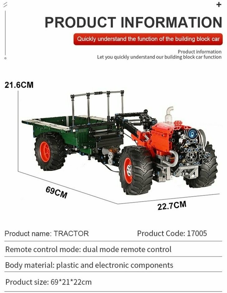 Ниже Вы можете прочитать отзывы на Конструктор Mould King 17005 Трактор,1312деталей, ознакомится с подробными характеристиками, посмотреть интересные обзоры и фотографии на Конструктор Mould King 17005 Трактор,1312деталей.