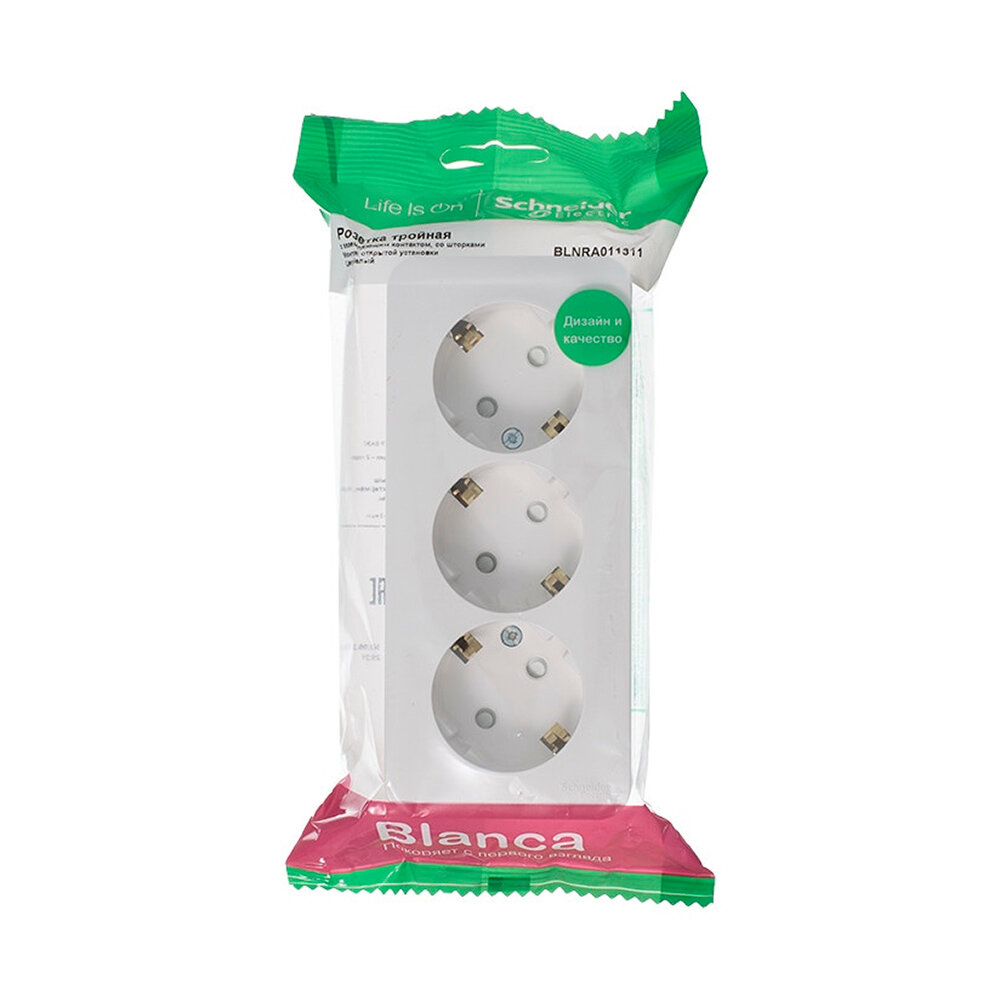 Розетка трехместная белая Schneider Electric Blanca с заземлением с шторками 16А, 250В, изолир. Пластина (комплект 3шт)