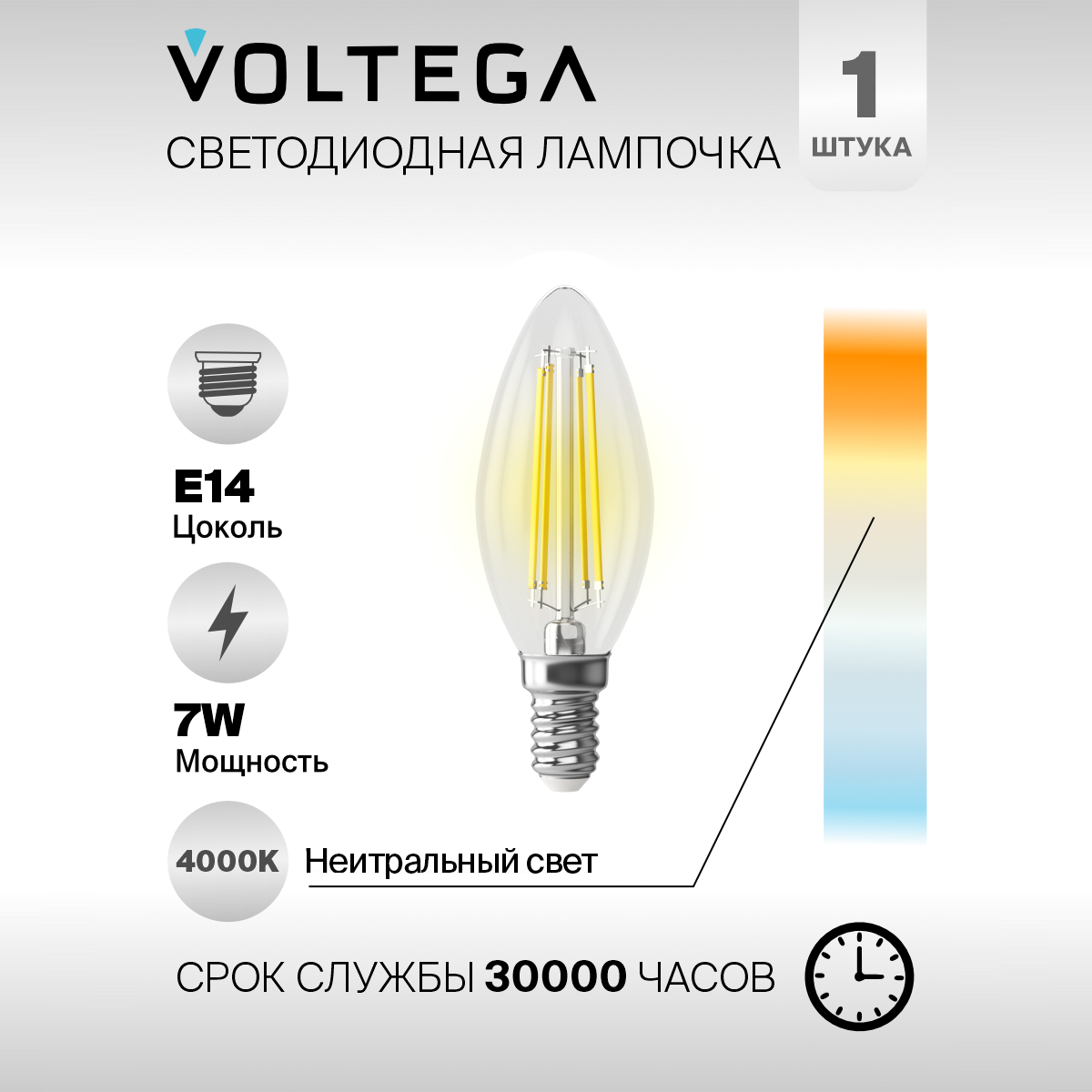 Лампа светодиодная филаментная Voltega E14 4000К 7 Вт 560 Лм 220-240 В свеча прозрачная