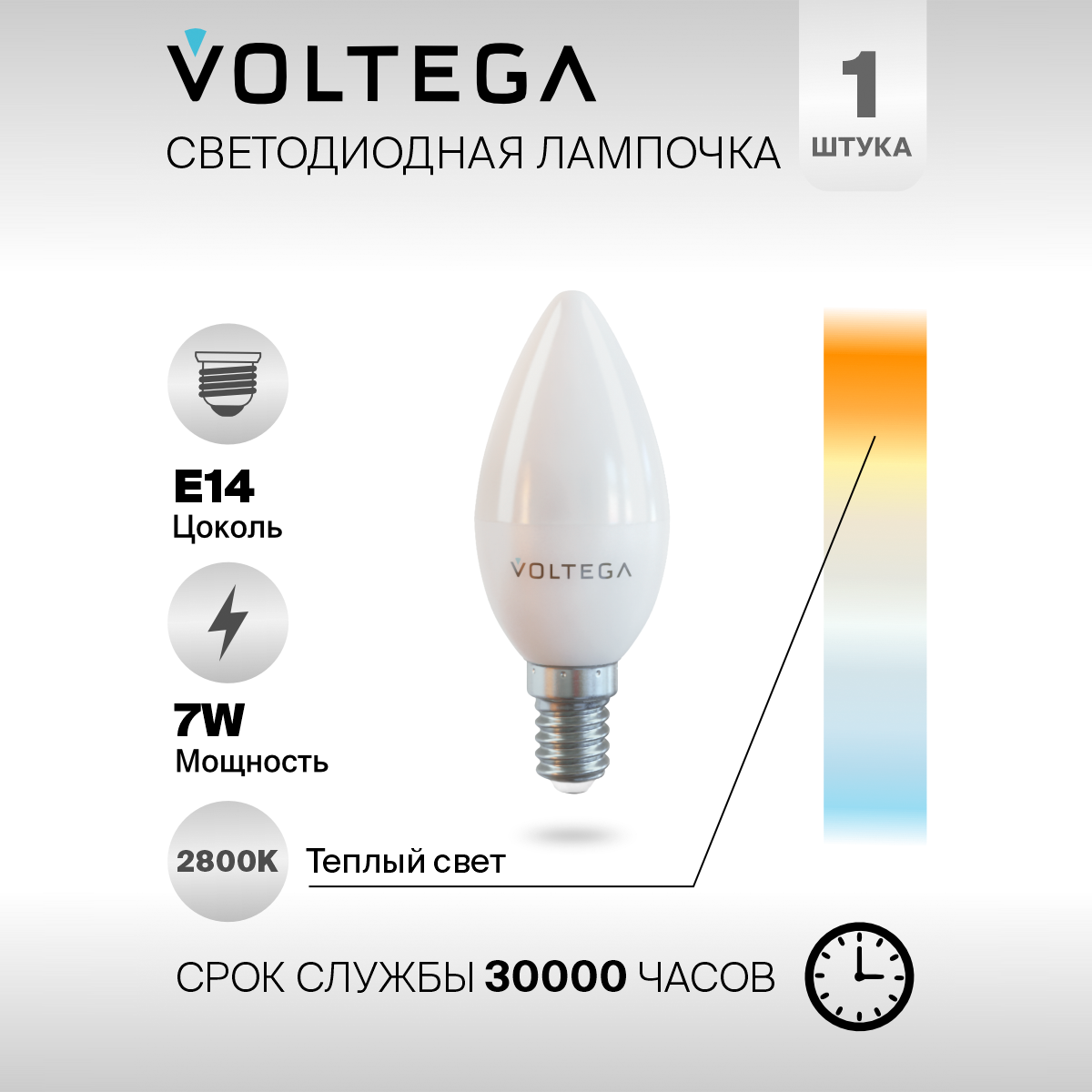 Купить Лампочка светодиодная E14 форма свеча матовая 7W теплый свет Voltega Simple Candle 2800K 1 штука