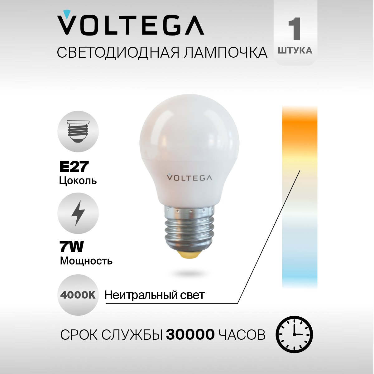 Купить Лампочка светодиодная E27 форма груши 7W нейтральный белый Voltega Simple Globe 4000K 1 штука