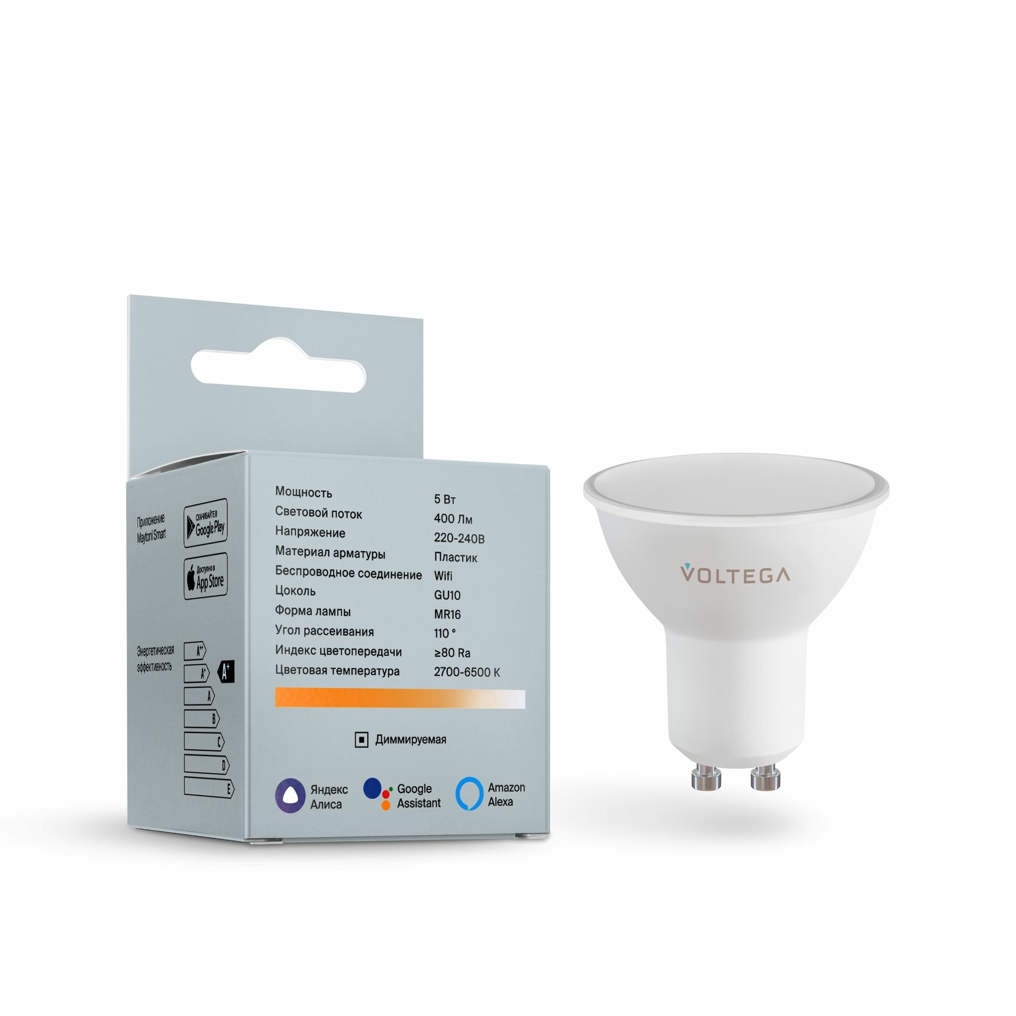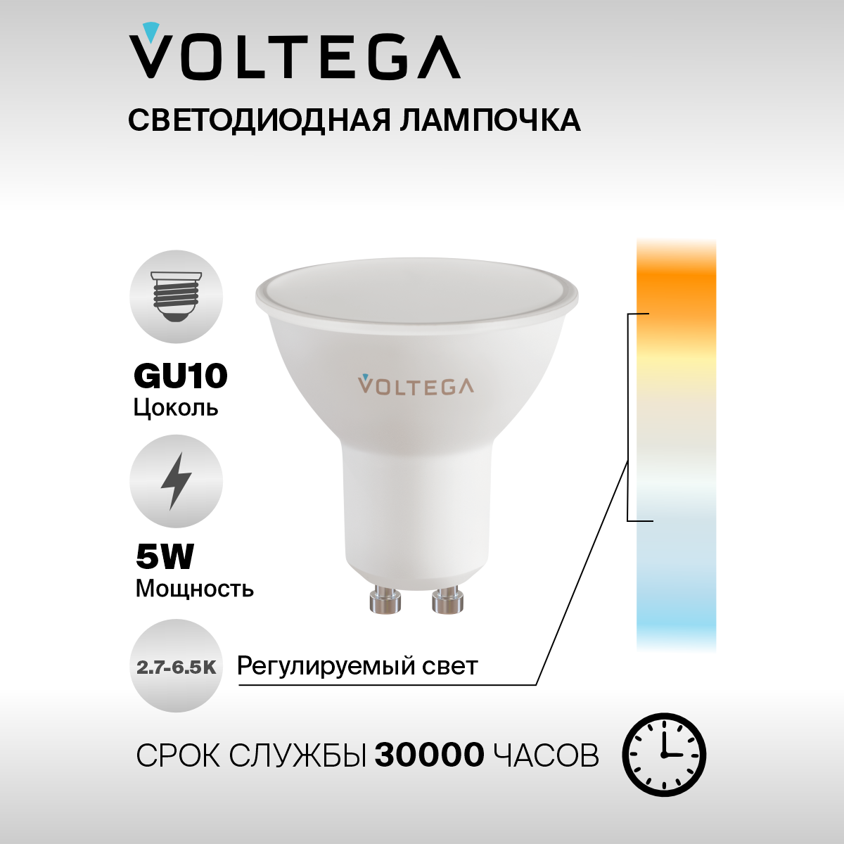 Лампочка светодиодная GU10 форма софит 5,5W Voltega Simple MR16 2700K-6500 1 штука диммируемая