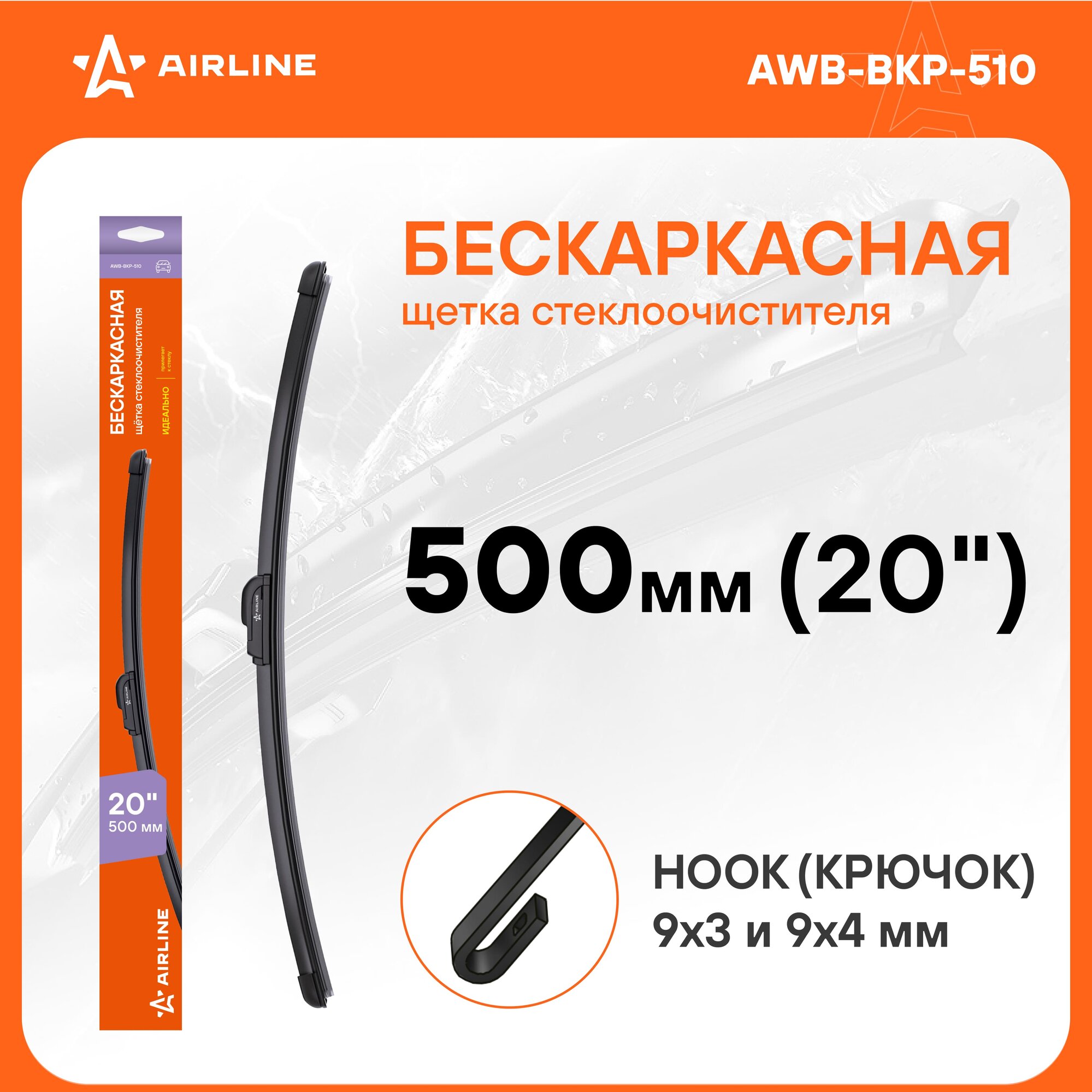 Щетка стеклоочистителя 500мм (20') бескаркасная, 1 адаптер (Hook 9x3, 9x4 mm - Крючок 9x3, 9x4 мм) (AWB-BKP-510) AIRLINE