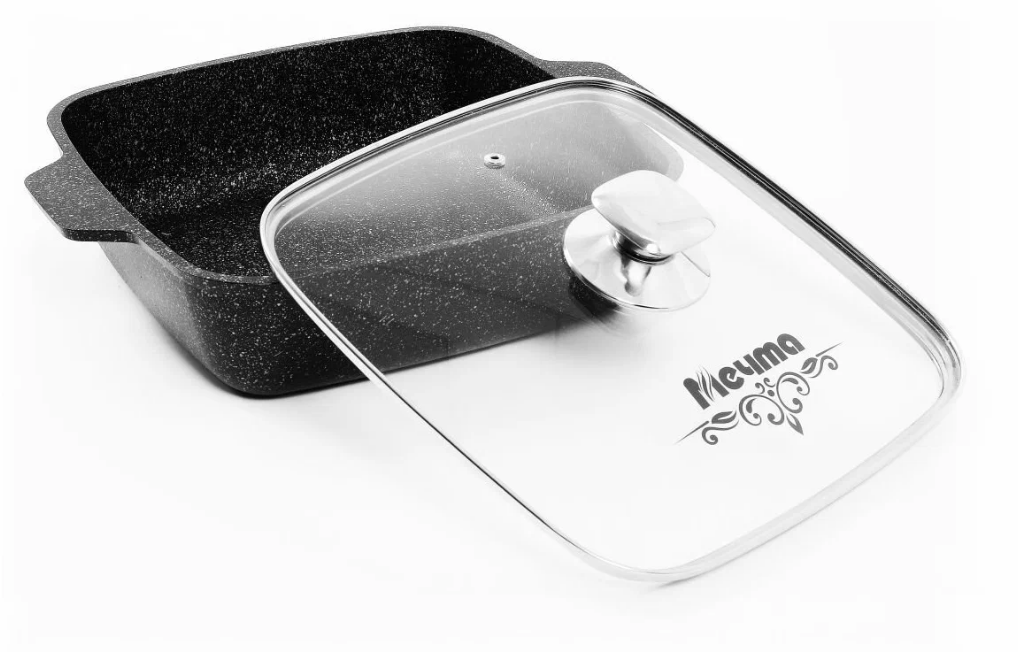 Жаровня Мечта квадратная 26х26 см Гранит с антипригарным покрытием с крышкой, НЕ индукционная
