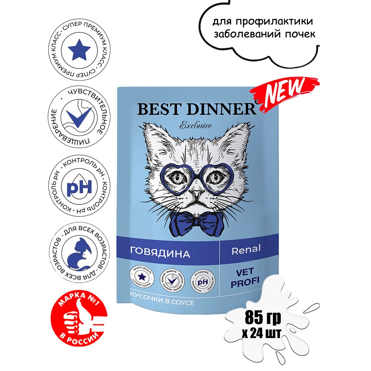 BEST DINNER EXCLUSIVE VET PROFI RENAL д взр кош при заболевании поч с говяд в соусе пауч 85 гр NEW 85 гр х 12 шт
