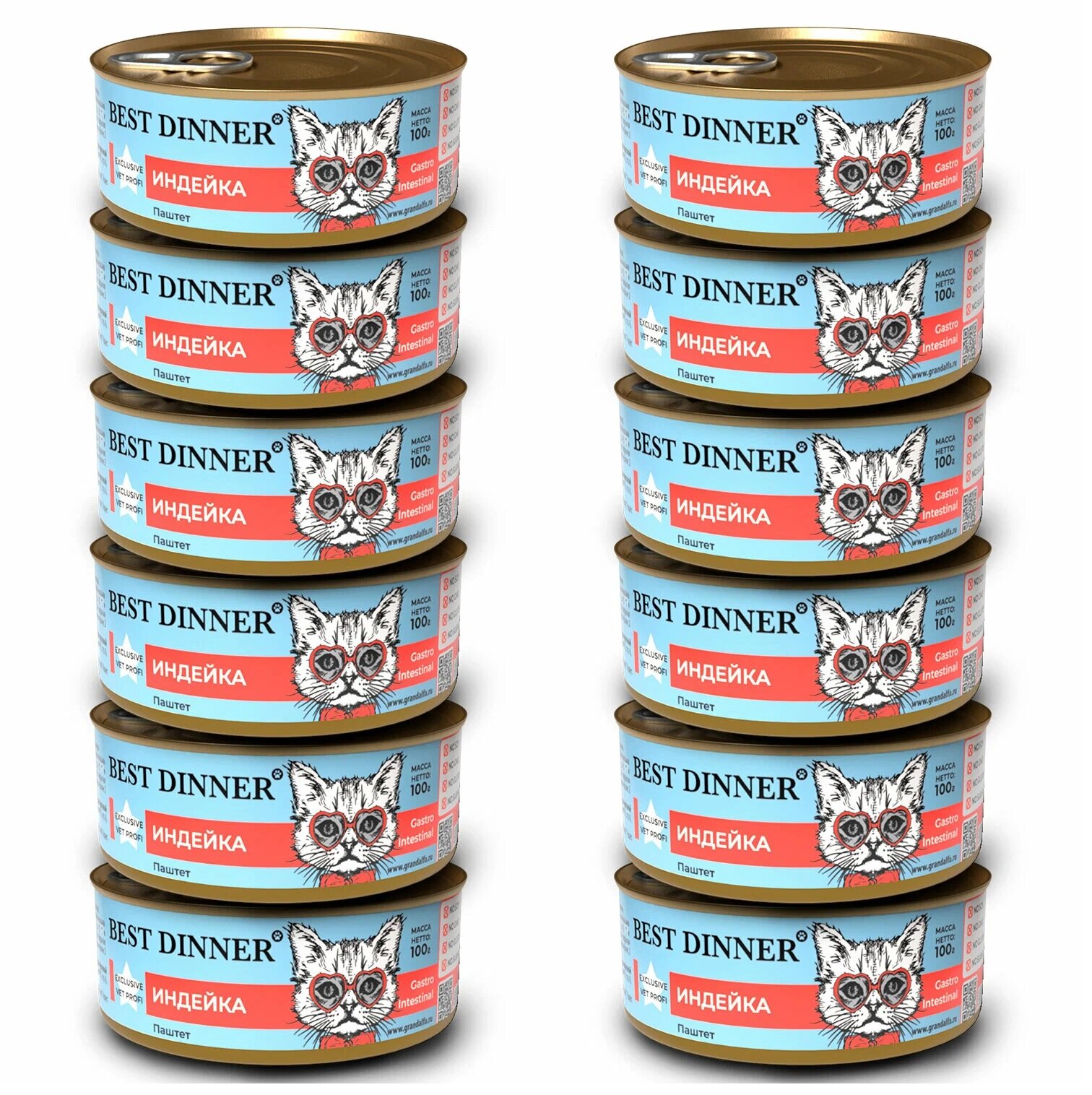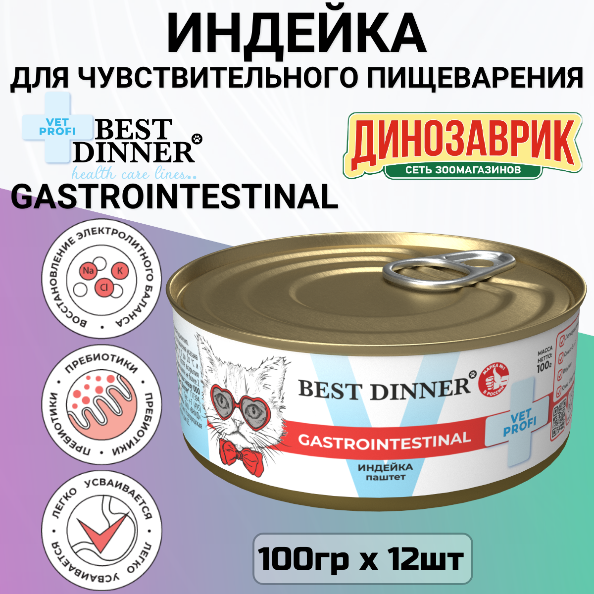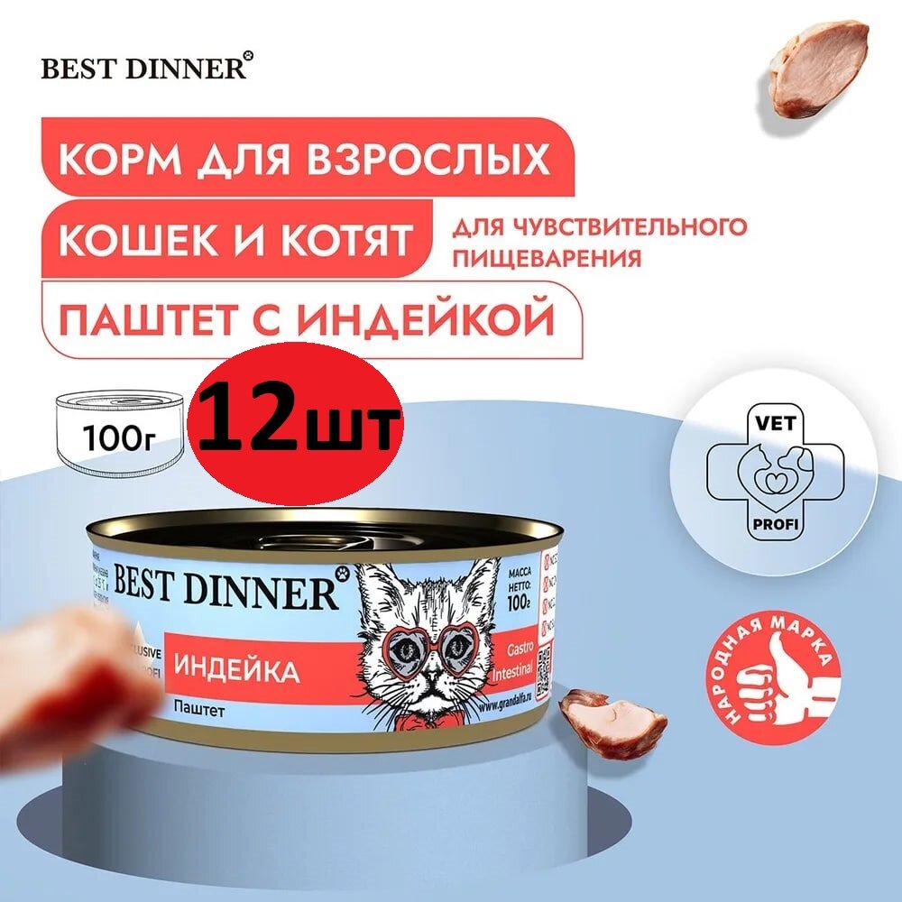 Влажный корм Best Dinner VET PROFI Gastro Intestinal для котят и кошек любых пород Индейка 12шт по 100г