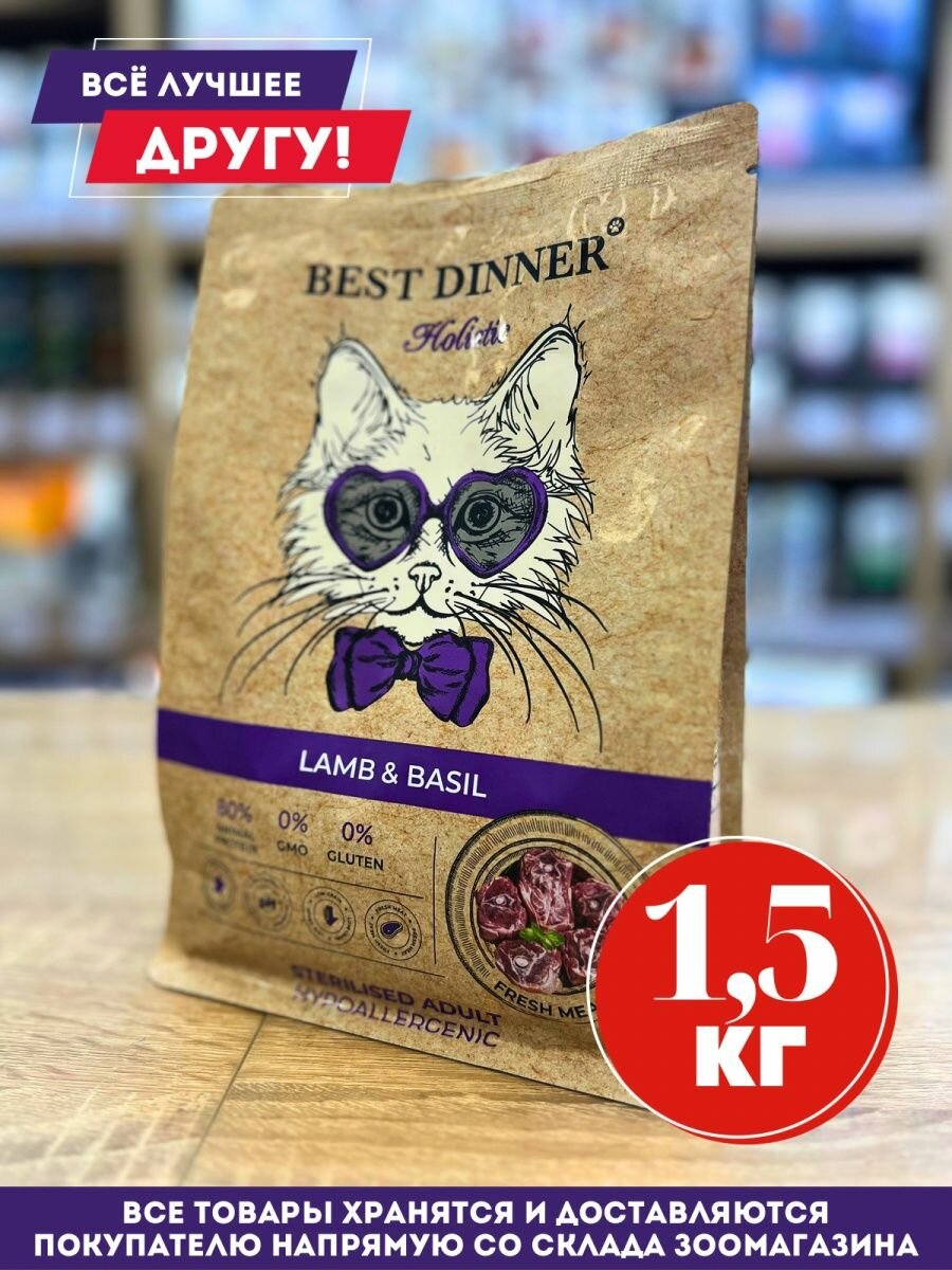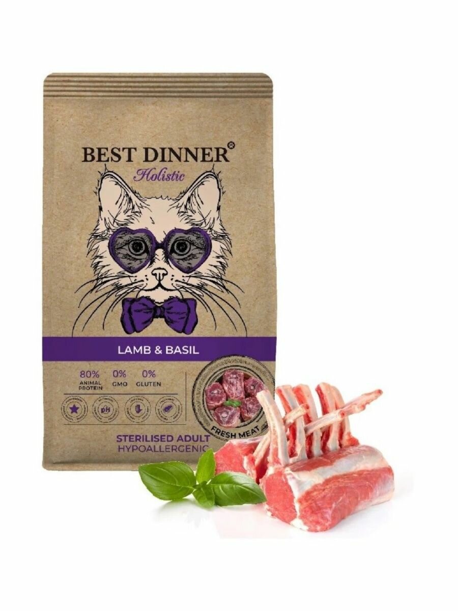 Купить BEST DINNER HOLISTIC HYPOALLERGENIC CAT ADULT STERILISED LAMB & BASIL гипоаллергенный для кастрированных котов и стерилизованных кошек с ягненком и базиликом (1,5 кг)