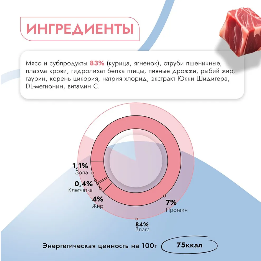| Плюсы: | Мясо в составе |