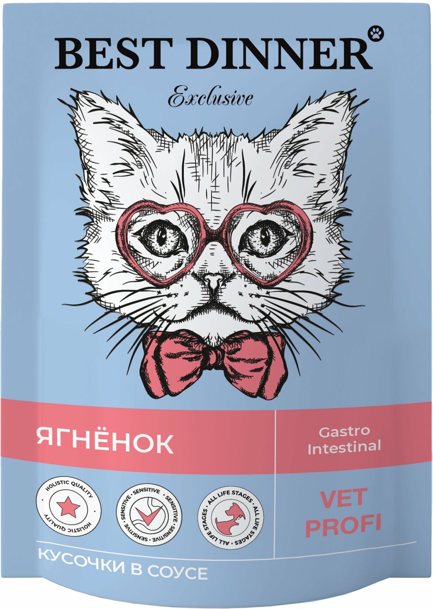 Купить Влажный диетический корм Best Dinner VET PROFI Gastrointestinal для кошек при заболеваниях ЖКТ кусочки в соусе Ягненок, 85 г х 24 шт, пауч (Бест Диннер)