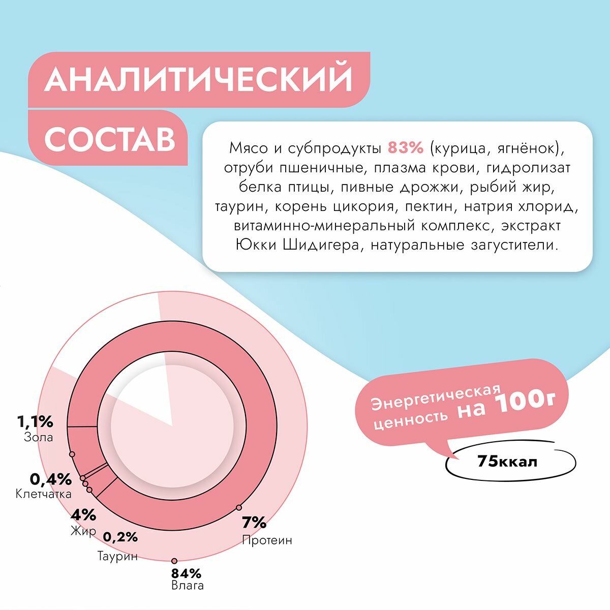 | Состав | говядина, таурин, желирующая добавка, соль, вода питьевая |