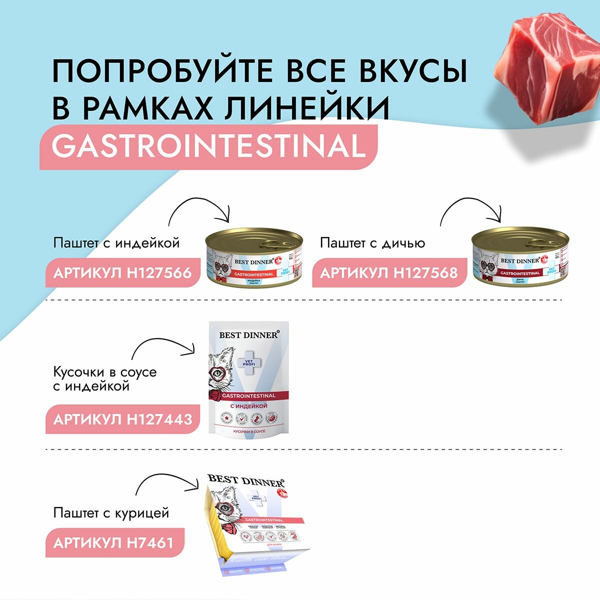 Влажный корм Best Dinner VET PROFI Gastro Intestinal для котят и кошек любых пород Индейка 12шт по 100г