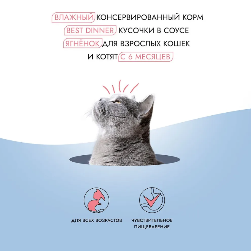 Best Dinner Adult Cat Lamb&Blueberry Полнорационный сухой корм для взрослых кошек, склонных к аллергии и проблемам с пищеварением с Ягненком и голубик
