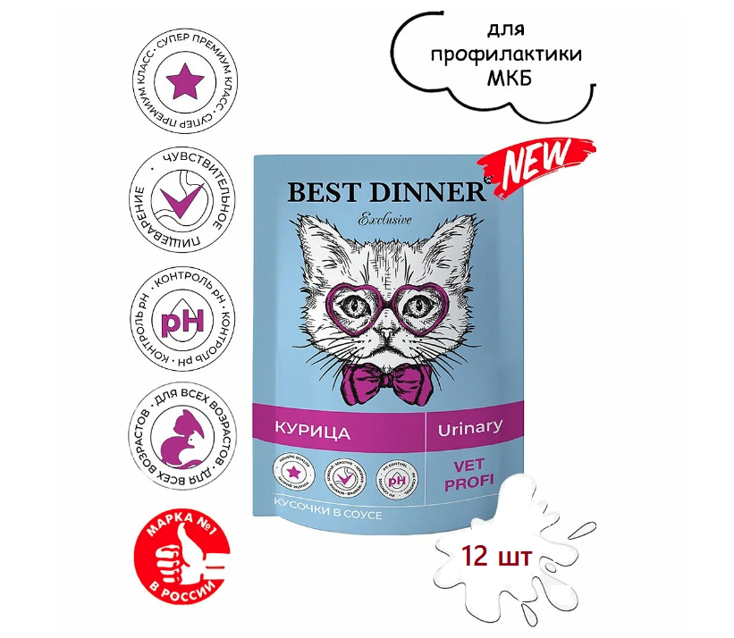 СохранитьПаучи Best Dinner Exclusive Vet Profi Urinary Бест Диннер кусочки в соусе с Курицей, 12 шт по 85г интересное: