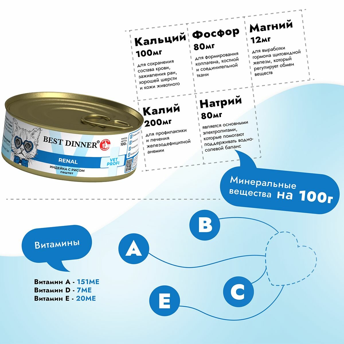 BEST DINNER EXCLUSIVE VET PROFI RENAL д взр кош при заболев почек паште с индей и рис банка 100 гр 100 гр х 12 шт
