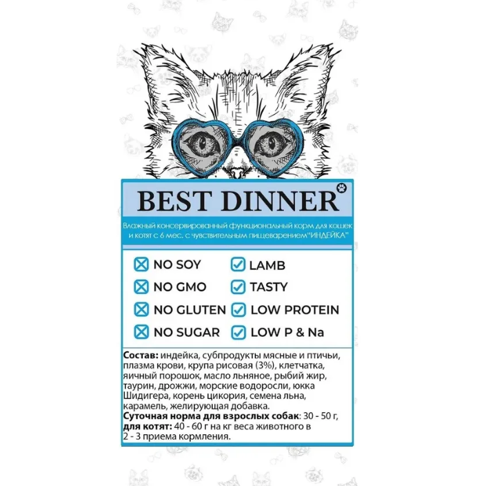 Консервы Best Dinner Vet Profi Exclusive для кошек с чувствительным пищеварением. Паштет из индейки 100гр