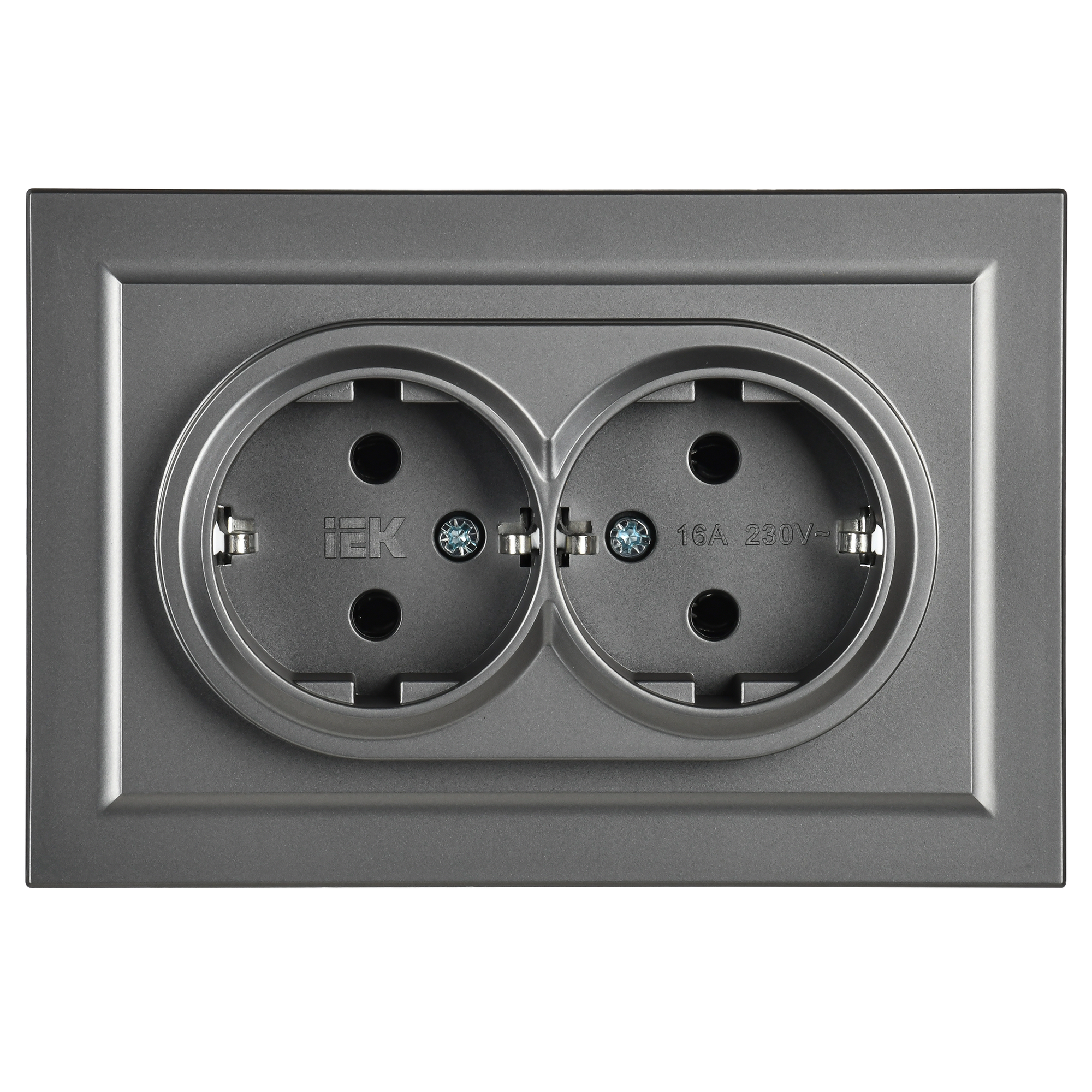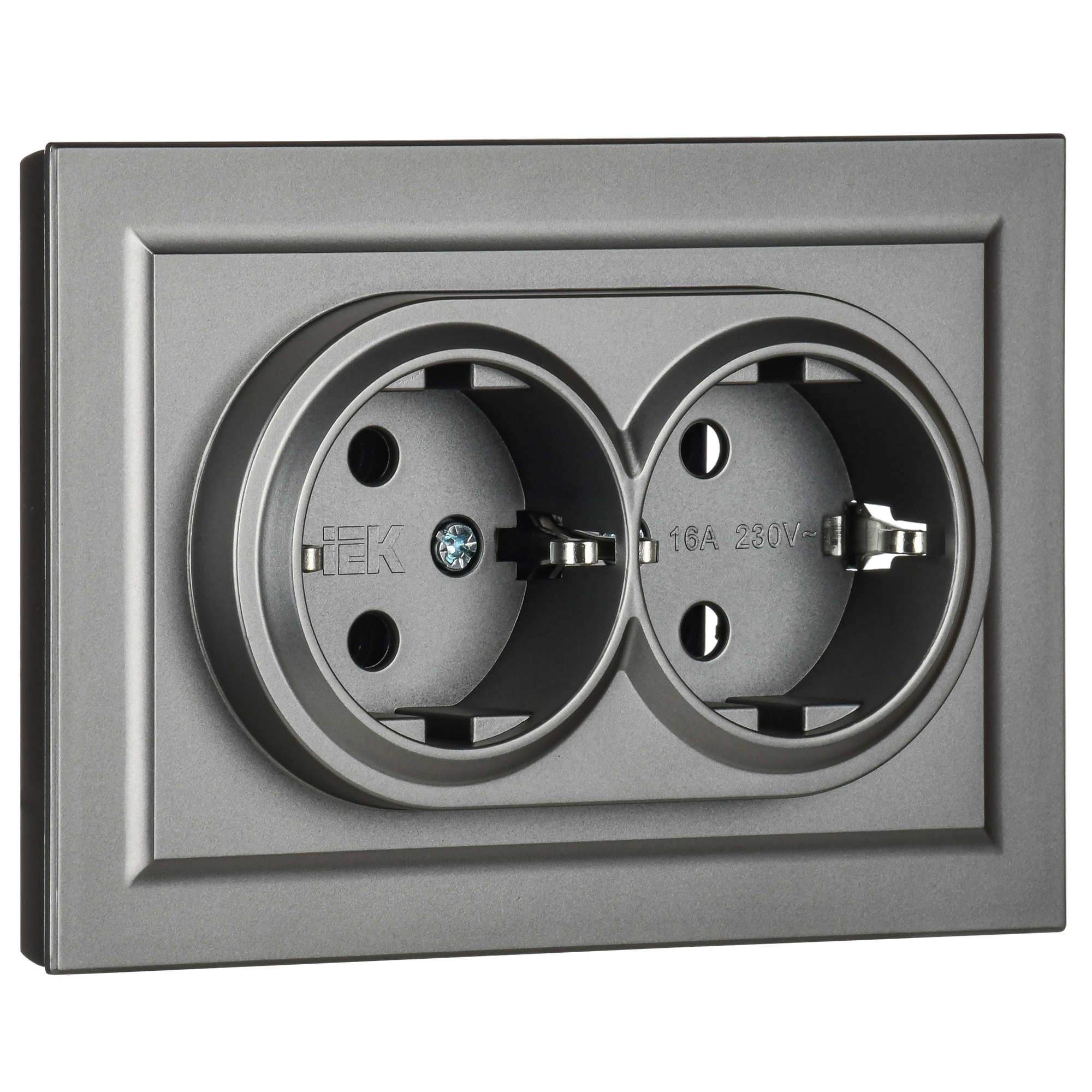 BRITE Розетка с заземлением с защитными шторками 16А РС14-1-0-БрС сталь , IEK BR-R14-16-K46 (1 шт.)