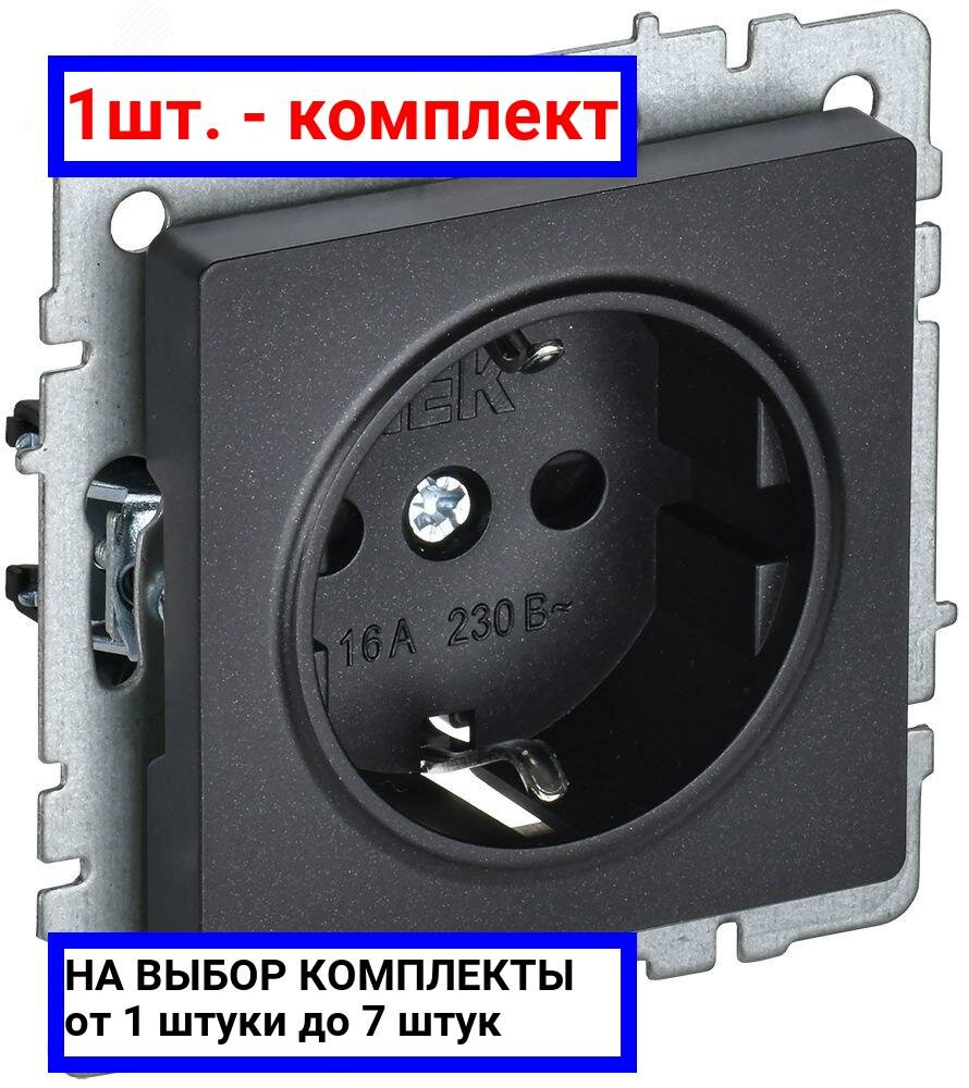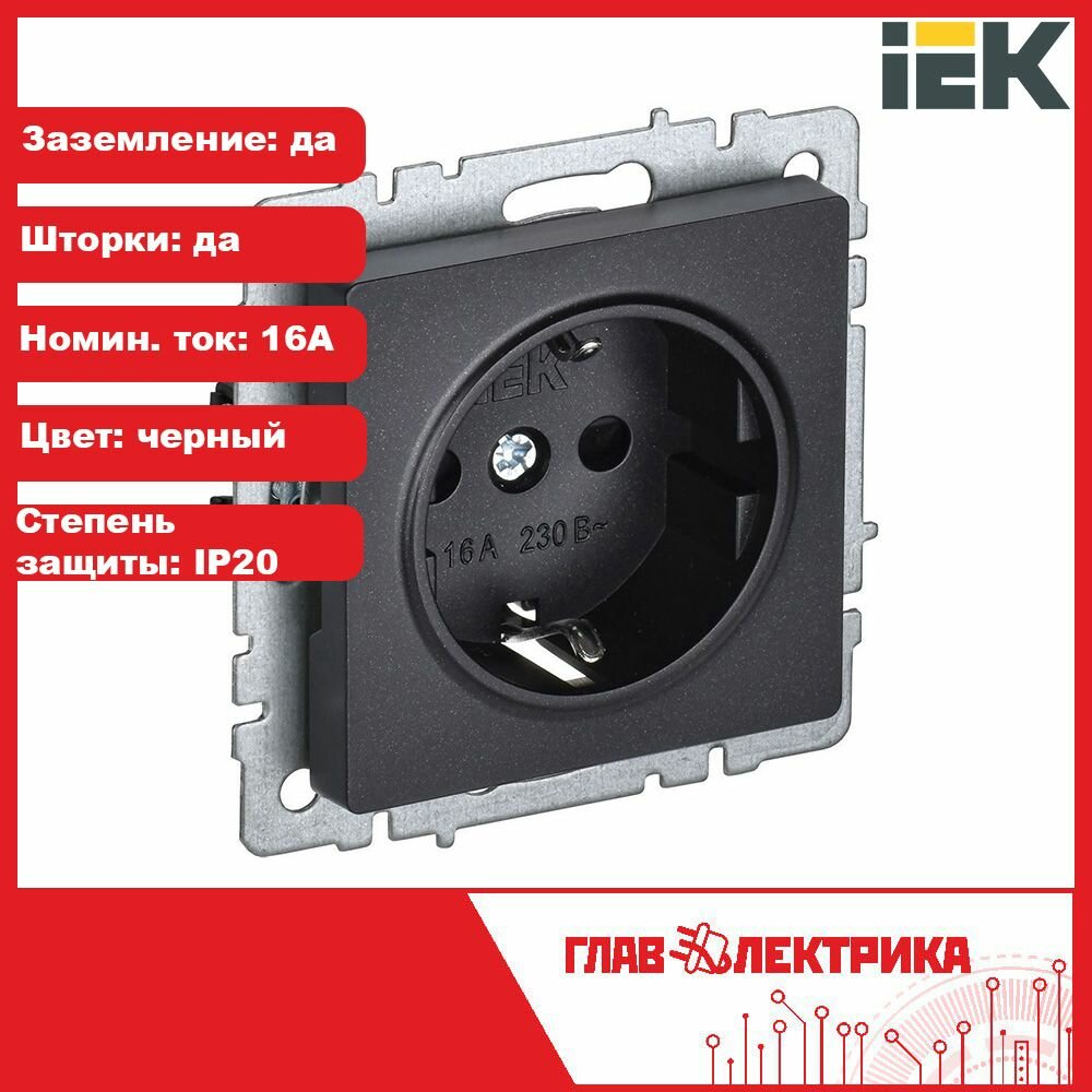 BRITE Розетка с заземлением с защитными шторками 16А РС14-1-0-БрЧ черный () IEK BR-R14-16-K02 (1 шт.)