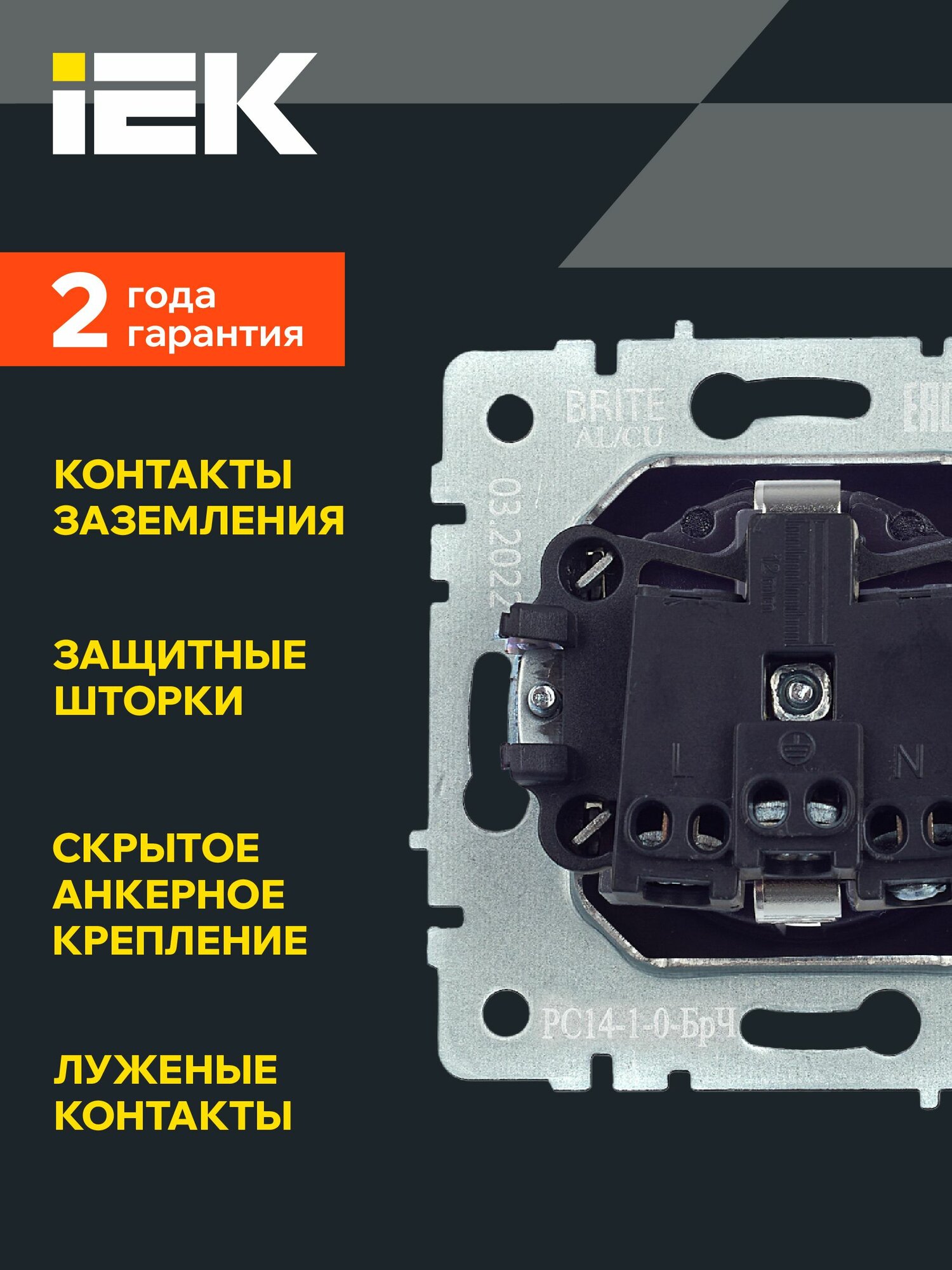 BRITE Розетка с заземлением с защитными шторками 16А РС14-1-0-БрШ шампань , IEK BR-R14-16-K37 (1 шт.)